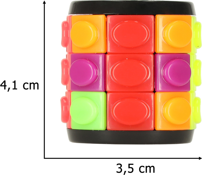 Máte radi logické hry? Alebo potrebujete niečím zamestnať ruky? Fantastický trojúrovňový logický hlavolam v tvare valca. Zábavné je usporiadať farby do radu. Krúžky je možné ľubovoľne otáčať a pritom meniť usporiadanie farebných kociek. V jednom rade je voľné miesto, aby sa kocky mohli pohybovať. Hlavolam sa môže zdať na prvý pohľad veľmi jednoduchý, ale tento návykový hlavolam vás zabaví na dlhé hodiny. Fantastická hra, ktorá zaujme nielen deti, ale aj dospelých.