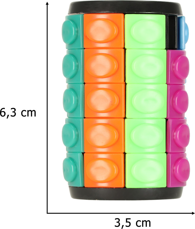 Máte radi logické hry? Alebo potrebujete niečím zamestnať ruky? Fantastický päťúrovňový logický hlavolam v tvare valca. Hra spočíva v usporiadaní farieb do radu. Krúžky je možné ľubovoľne otáčať a pritom meniť usporiadanie farebných kociek. V jednom rade je voľné miesto, aby sa kocky mohli pohybovať. Hlavolam sa môže zdať na prvý pohľad veľmi jednoduchý, ale tento návykový hlavolam vás zabaví na dlhé hodiny. Fantastická hra, ktorá zaujme nielen deti, ale aj dospelých.