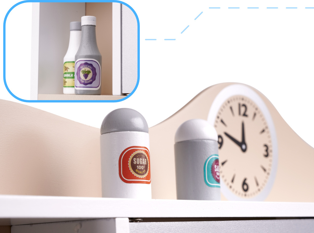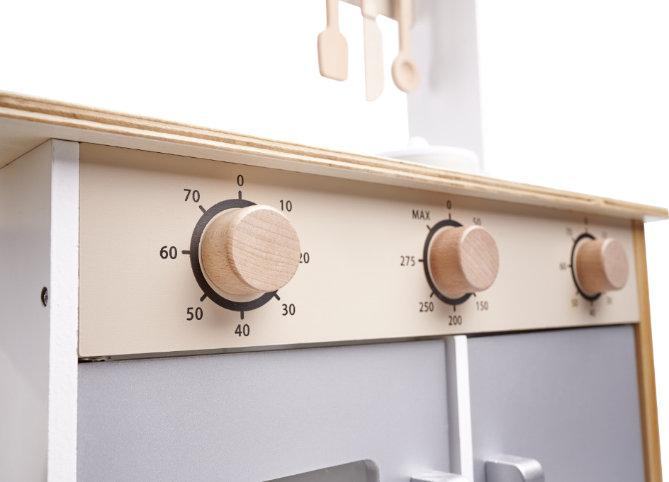 Hranie v hernej kuchynke bude tiež skvelým spôsobom, ako deťom ukázať, ako sa pri varení bezpečne ochrániť – príprava jedál v drevenej kuchynke je úplne bezpečná!