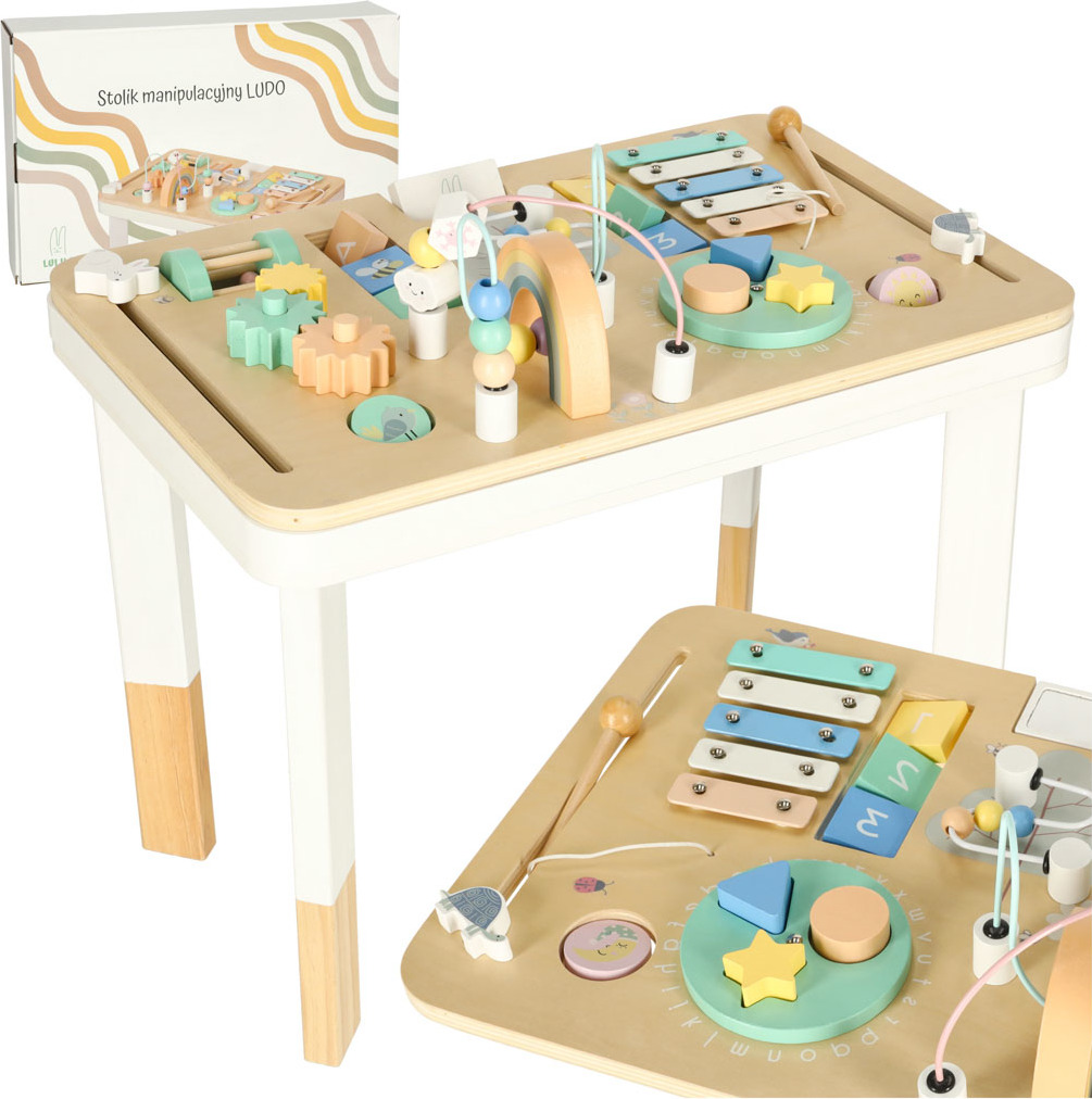 Interaktívny stôl LUDO je ideálnym darčekom pre každé dieťa! Podporuje rozvoj kľúčových zručností prostredníctvom hry. Rôzne manipulačné prvky sú ideálne na stimuláciu predstavivosti, rozvoj motoriky a logického myslenia dieťaťa. Stolová doska obsahuje: