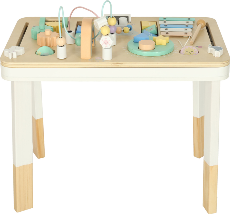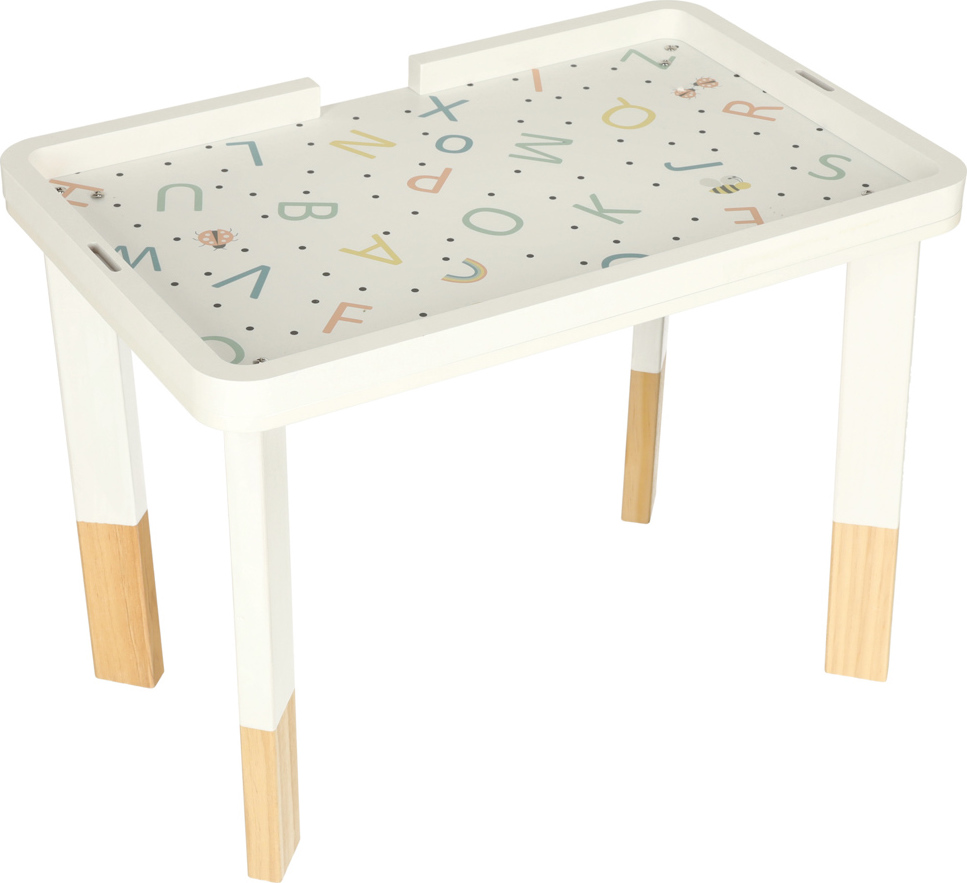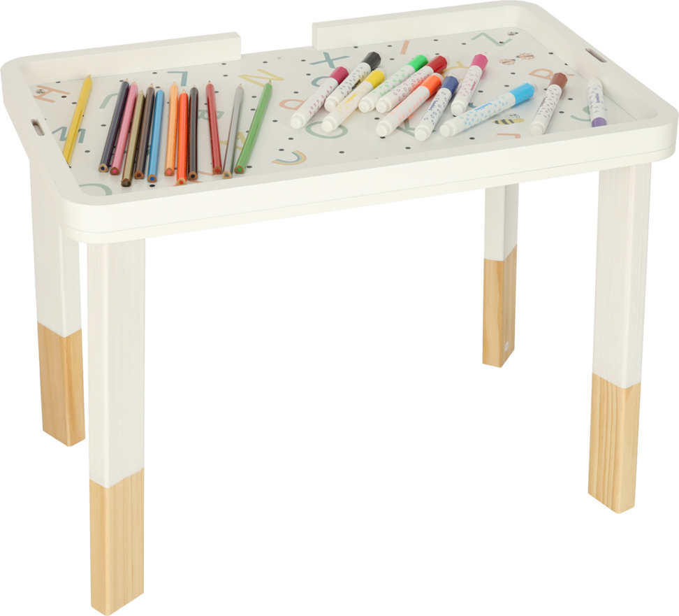 - bezpečnosť a kvalita konštrukcie - stôl je vyrobený z dreva so zaoblenými hranami, čo minimalizuje riziko zranenia pri hre