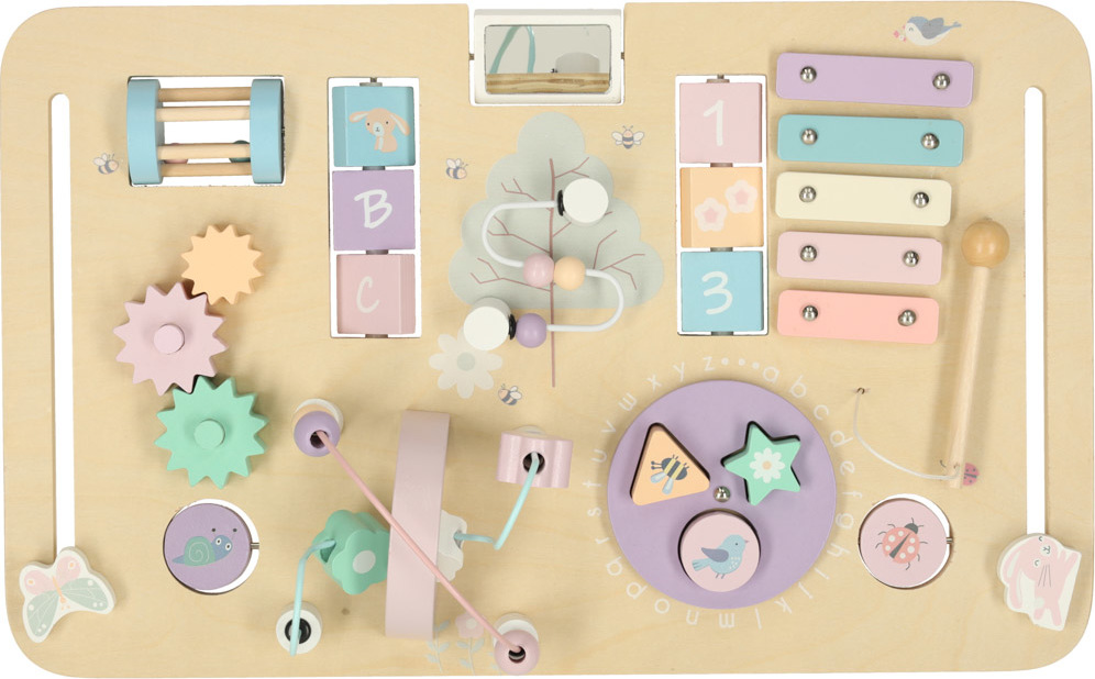 Je vyrobený z dreva so zaoblenými hranami, čo zaručuje bezpečnosť pri hre. Všetky prvky sú natreté netoxickými farbami, takže sú pre batoľatá bezpečné. Pastelové farby sú pútavé a dokonale zapadajú do detskej izby. Výrobok spĺňa všetky európske bezpečnostné normy a je certifikovaný CE.