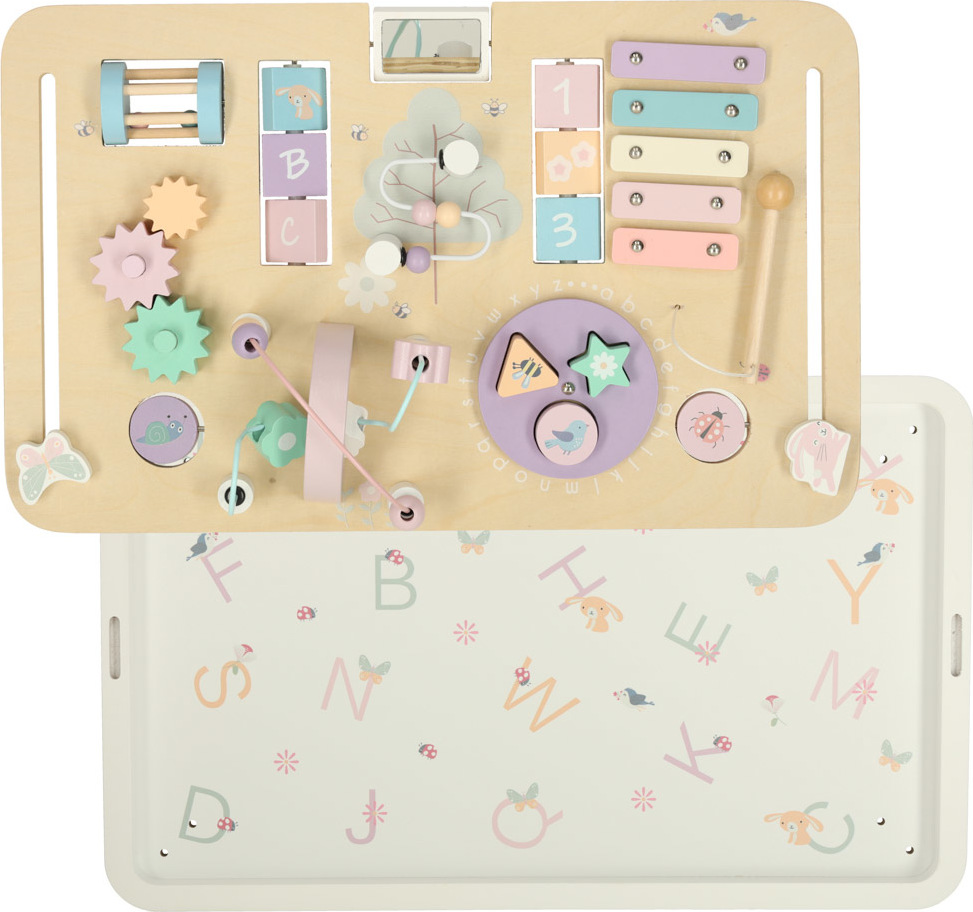 - rozvoj kľúčových zručností - stolík podporuje rozvoj motorických zručností, logického myslenia a predstavivosti dieťaťa prostredníctvom interaktívnych prvkov.