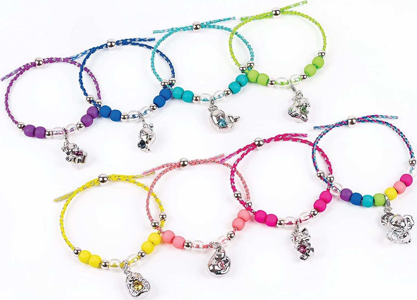 Vyrob si originálny náramok s nádherným kamienkom Swarovski! Sada obsahuje: 3 náramky s príveskami a kryštálom SWAROVSKI, krabičku v tvare srdca, kľúčik, korálky, farebné šnúry a inštrukcie