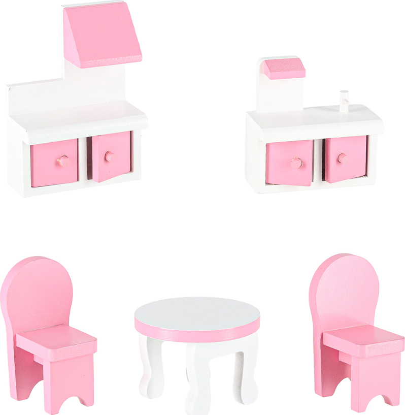 Naše drevené domčeky sú plne vybavené. Súčasťou je krásny nábytok. Príslušenstvo je vyrobené z dreva. Napríklad v miestnosti, ktorá slúži ako kuchyňa, nájdete krásny kus nábytku s otváracími dverami. Priložené príslušenstvo bude skvelým doplnkom každej izby a bude sa hodiť pri spoločných hrách.