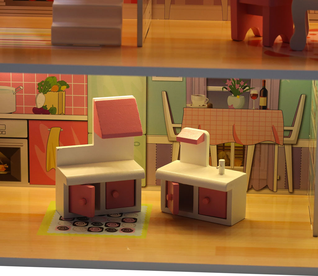 Ako sa na skutočný domov pristane, má výrazné LED osvetlenie (studená biela), ktoré nielenže vyzerá fantasticky, ale skvele poslúži aj ako nočná lampička. Veľké množstvo drevených prvkov osloví nielen deti, ale aj dospelých. To znamená, že aj rodičia si užijú skvelú zábavu pri spoločnej hre. Kreatívna hračka, s ktorou nie je čas na nudu. Kvalita a precíznosť spracovania poteší deti aj dospelých. Miniatúrny nábytok, grafika na stenách a LED osvetlenie robia naše domčeky pre bábiky jedinečnými a veľmi útulnými. Dobrá zábava je bezpečná zábava! Poskytnite ju svojmu dieťaťu! Všetky časti domčeka boli starostlivo obrúsené, aby sa deťom pri hre nedostali do rúk žiadne triesky. Naše drevené domčeky pre bábiky vám zaručia nielen skvelú zábavu, ale budú aj nádhernou dekoráciou detskej izby. Dokonale podnecujú predstavivosť, podporujú kreatívne a netradičné myslenie a sú skvelé pre rozvoj manuálnych zručností u najmenších. Spoločná stavba domu naučí deti spolupracovať a podporí rozvoj ich sociálnych zručností.