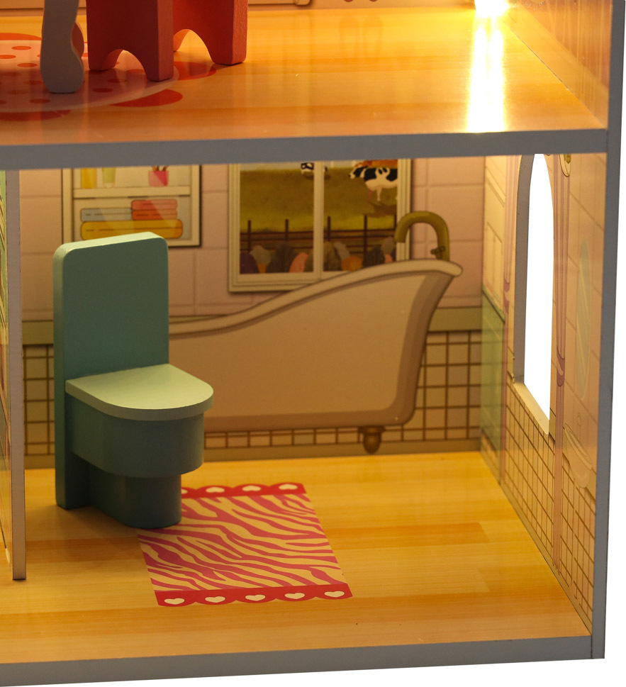 - OSVETLENIE LED - Domčeky pre bábiky sú vybavené pôsobivým LED osvetlením, ktoré nielen skvele vyzerá, ale možno ho použiť aj ako nočnú lampičku. Svetlá sú umiestnené na lepiacej páske, ktorú stačí nalepiť na stropy a steny domu. Svetlá je možné pripevniť ľubovoľným spôsobom. Napájanie batériami AA (nie sú súčasťou dodávky).