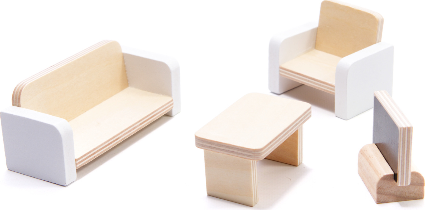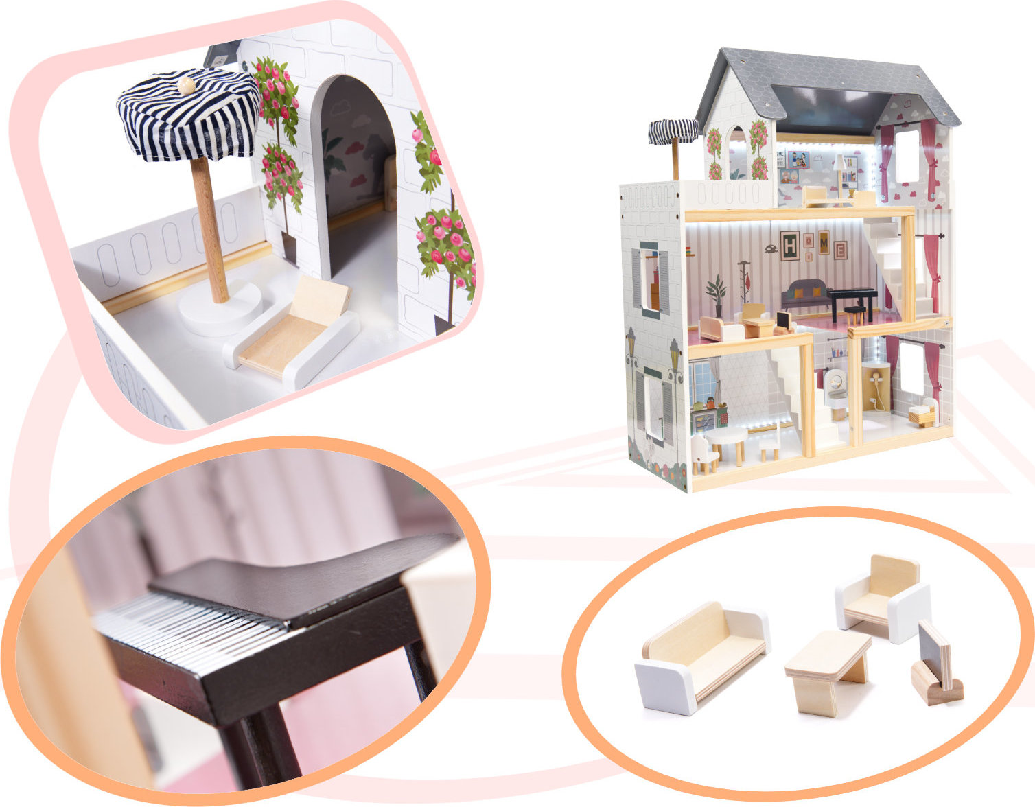 Domček je plne vybavený. Súprava sa dodáva s krásnym dreveným nábytkom, ktorý bude dokonalým doplnkom každej miestnosti v domčeku.