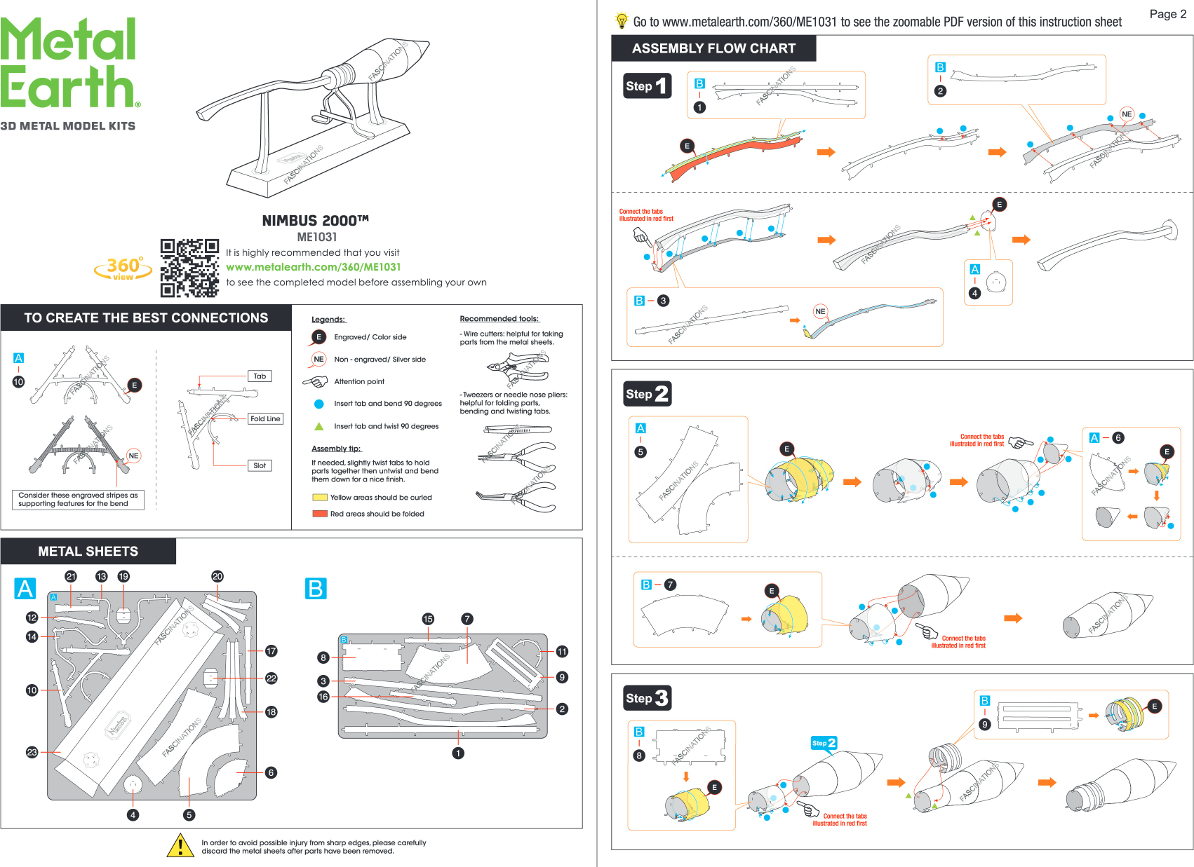 Jednotlivé diely vyberte z kovových plátkov, v prípade potreby použite malé štiepacie nožnice (nie sú súčasťou). Dieliky sa spájajú k sebe pomocou zámkov tvorených úchytom (zobáčikom) a otvorom. Zobáčik ohnite pomocou malých tenkých klieští (nie sú súčasťou) a postupne spojte všetky zámky až vznikne veľmi realistický majstrovský kúsok!