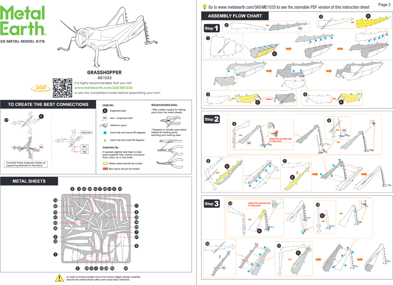 Jednotlivé diely vyberte z kovových plátkov, v prípade potreby použite malé štiepacie nožnice (nie sú súčasťou). Dieliky sa spájajú k sebe pomocou zámkov tvorených úchytom (zobáčikom) a otvorom. Zobáčik ohnite pomocou malých tenkých klieští (nie sú súčasťou) a postupne spojte všetky zámky až vznikne veľmi realistický majstrovský kúsok!