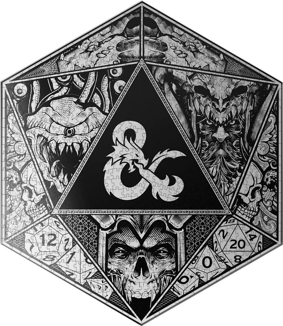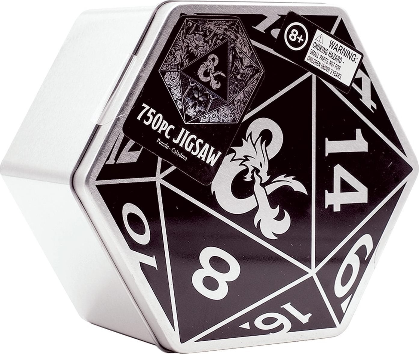 Puzzle pre správnych fanúšikov Dungeons & Dragons v darčekovom balení. Puzzle dieliky majú metalický povrch a zložený obrázok má nevšedný tvar šesťuholníka. Balené v designovej plechovej krabičke.