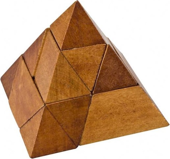 Drevený hlavolam v tvare pyramídy. Prebuďte v sebe zvedavosť a zistite, či ste dobrí v riešení rébusov a hádaniek... Prídete na spôsob, ako jednotlivé dieliky zložiť do tvaru pyramídy?