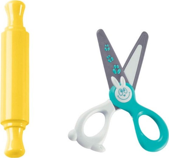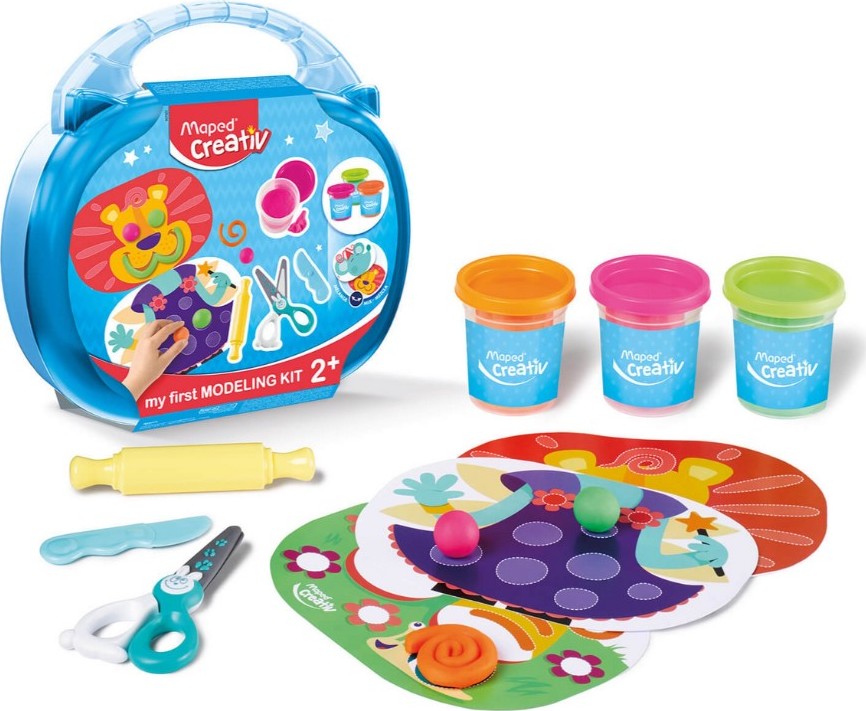 Balenie obsahuje 3 krabičky farebnej modelovacej hmoty a balíček nástrojov na vytváranie obrazcov a postavičiek - nožík na hračky, valček a nožnice bezpečné pre deti. Kufrík navyše obsahuje 3 dosky s dvoma postavičkami na zdobenie a spestrenie hry.