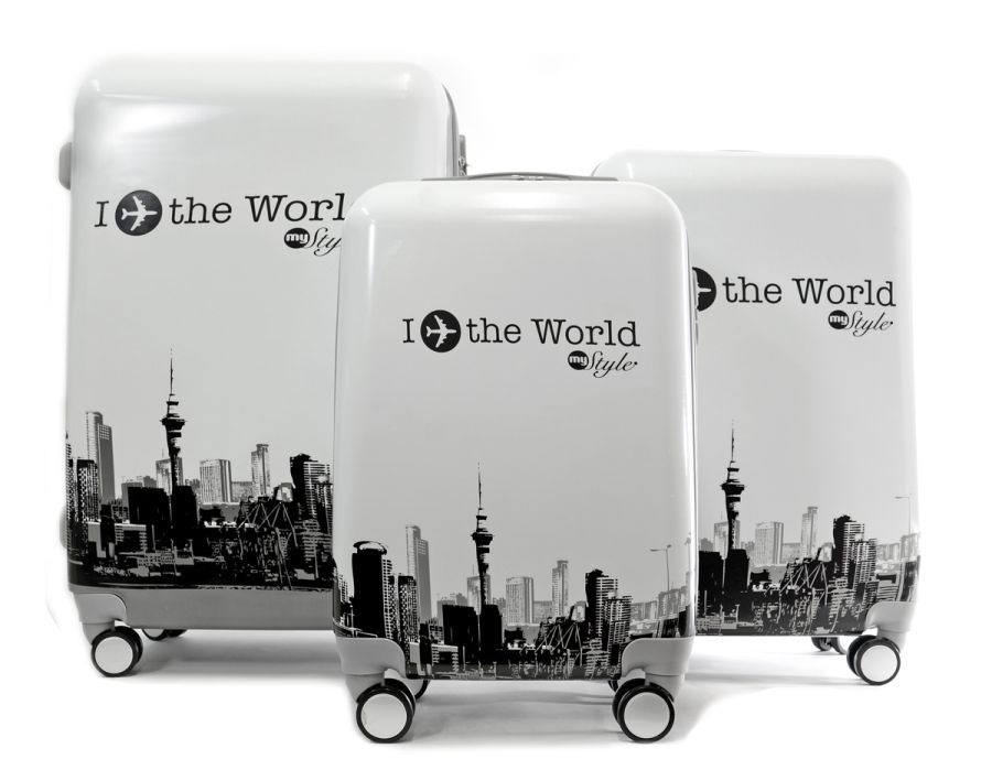 Moderní cestovní kufry WORLD - bílé
