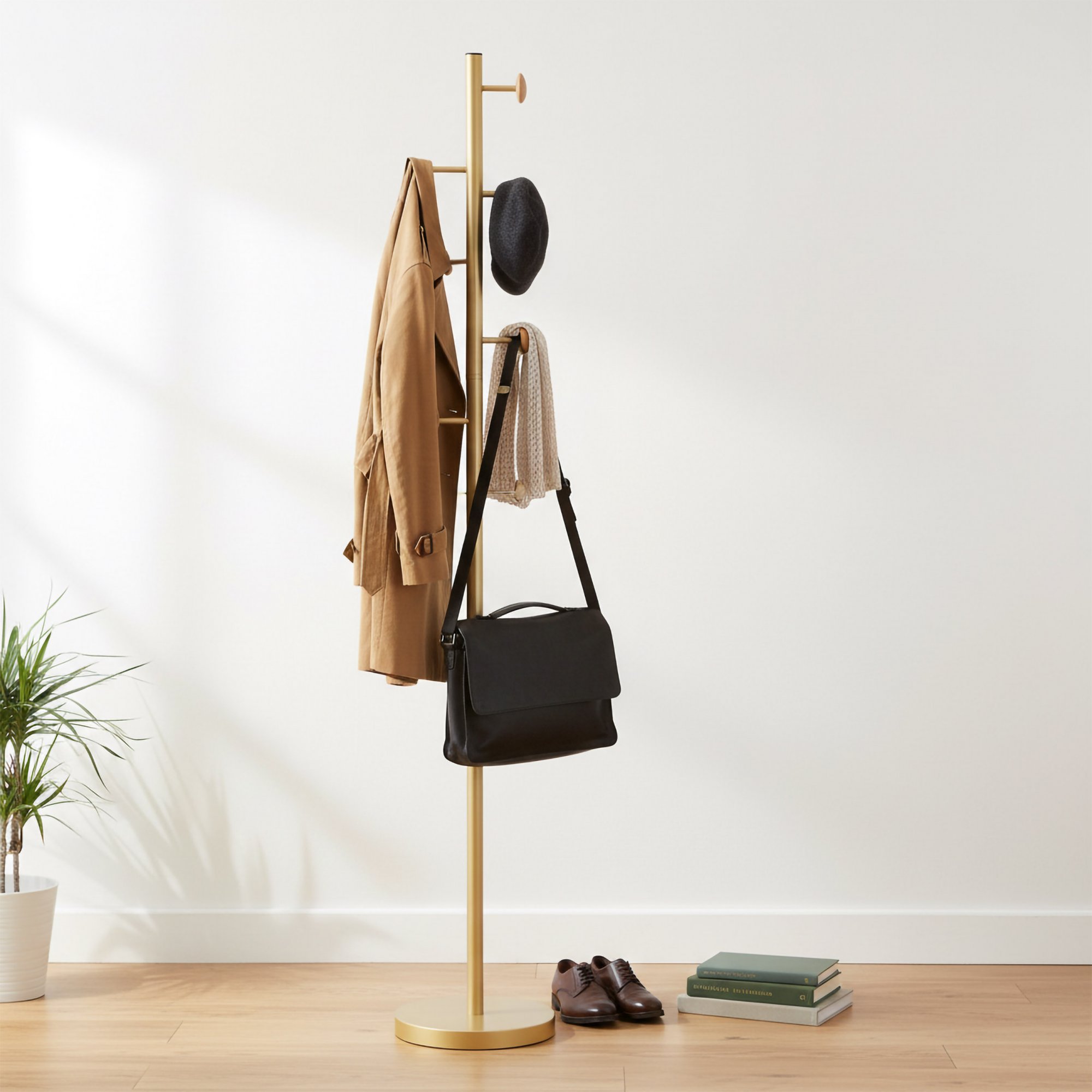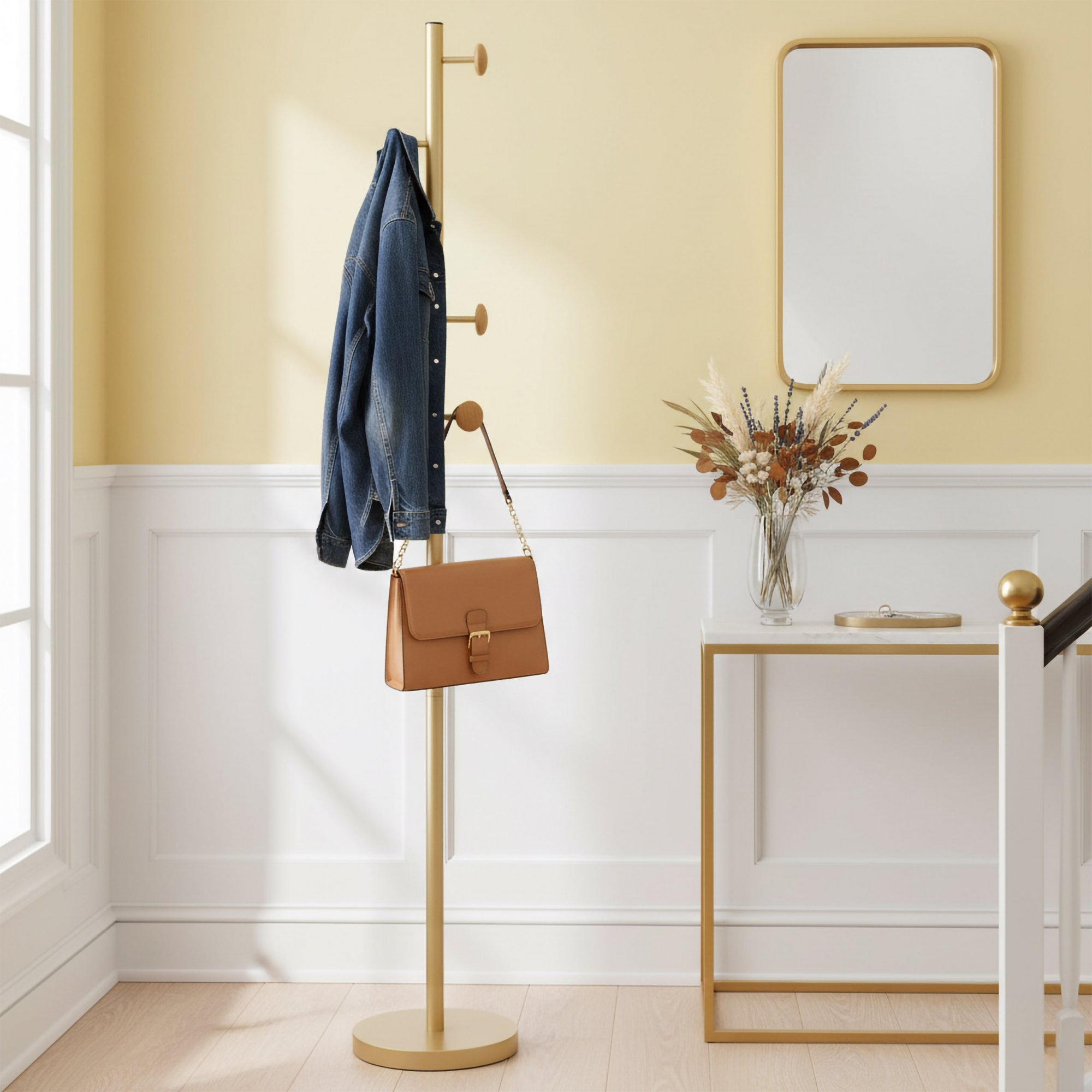 Moderný dizajnový stojanový vešiak ALGER - zlatý