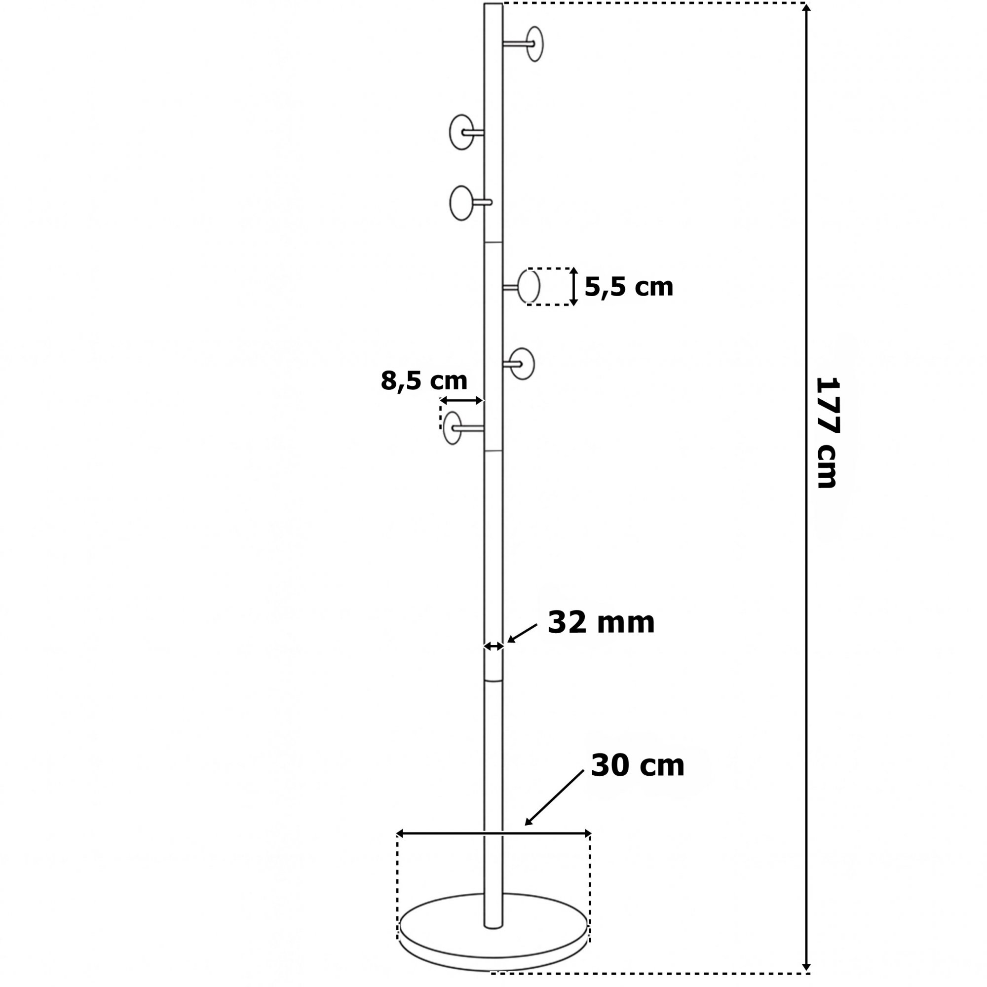 Vešiak na kabáty Alger je elegantné a praktické riešenie, ktoré sa perfektne hodí do chodieb, kancelárií alebo čakární. Je vyrobený z masívneho kovu a upevnený na stabilnej základni, čo zaručuje odolnosť a bezpečnosť. Pomáha udržiavať poriadok pohodlným zavesením kabátov, búnd a doplnkov a zároveň dodáva interiéru moderný a štýlový nádych. Výberom tohto modelu získate nielen funkčný kus nábytku, ale aj dizajnový kúsok, ktorý vám bude slúžiť po mnoho rokov.