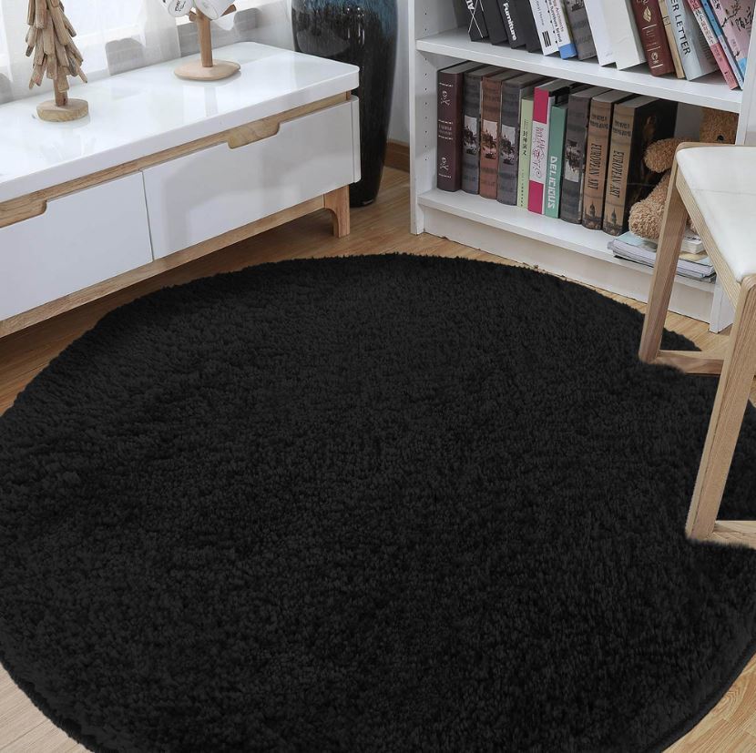 Moderný koberec SHAGGY CAMIL okrúhly - čierny
