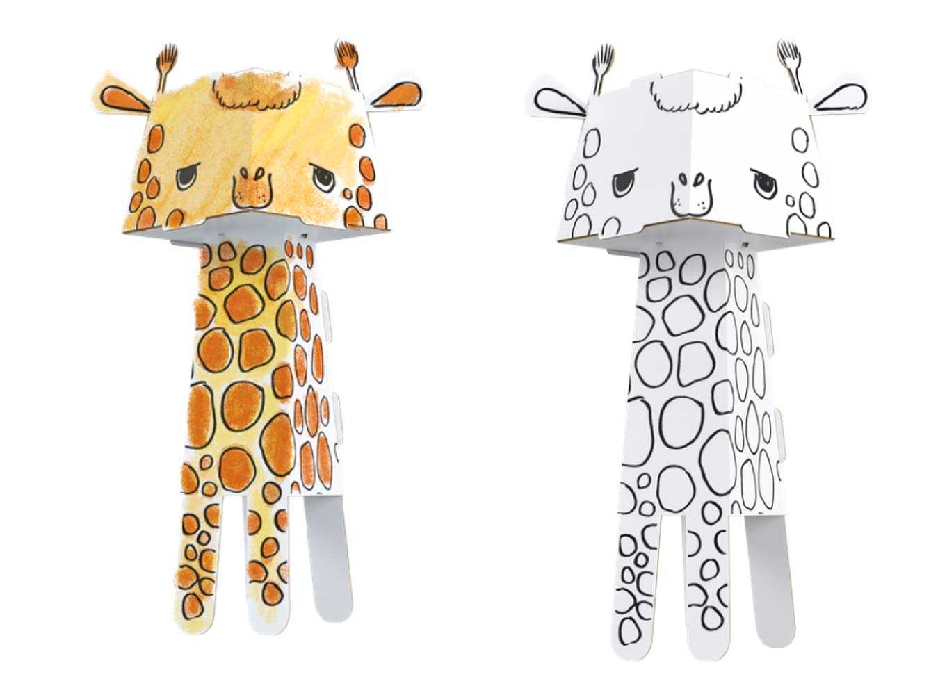 Vymaluj všechny částí a seskládej žirafku dohromady. Zvířátko je lehké ale odolné. Je vyrobeno z pevné lepenky, hladce ořezané a snadno sestavitelné.