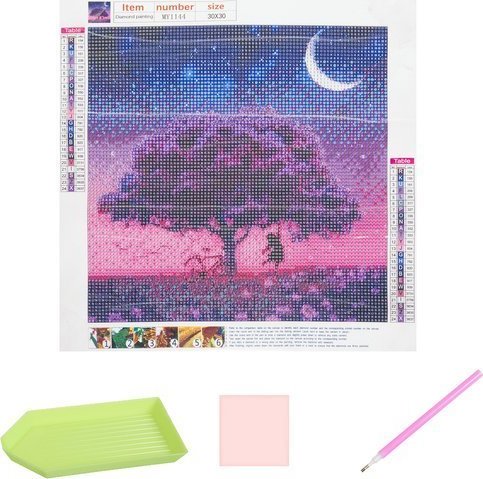 Balenie obsahuje: predlohu, farebné diamanty, aplikátor, suché lepidlo, nádobku