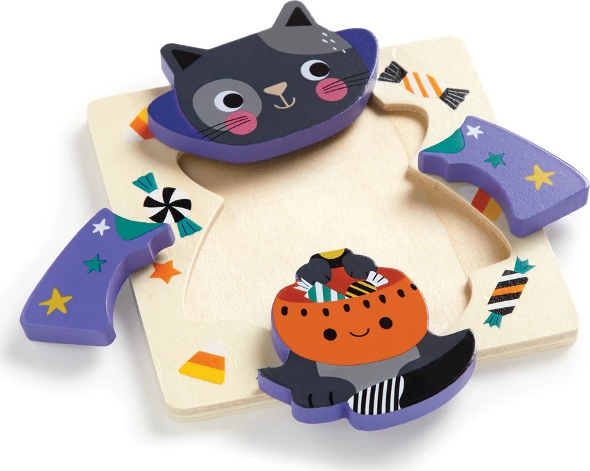 Sada 4 drevených puzzle s motívmi Halloweenu. Drevená puzzle pre malé deti pomáhajú rozvíjať motorické schopnosti, kognitívne schopnosti, jazyk a pamäť. Ideálne prvé drevené puzzle pre najmenších. Robustné vkladacie puzzle s veľkými dielikmi vo vianočnom dizajne. Skvelý spôsob precvičenia jemnej motoriky, logického myslenia a poznávania tvarov a farieb. Toto drevené puzzle pre batoľatá je dodávané s hladkou drevenou základnou doskou s maľovanou scénou. Batoľatá môžu tiež precvičovať počítanie dielikov skladačky.