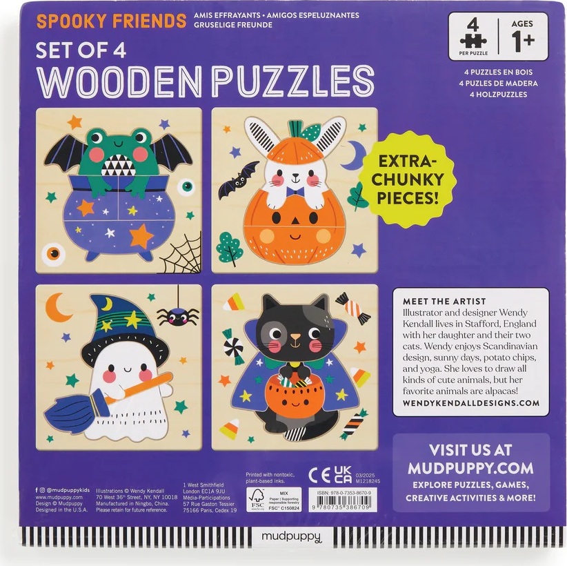 Mudpuppy Drevené halloweenskej puzzle sada 4 puzzle