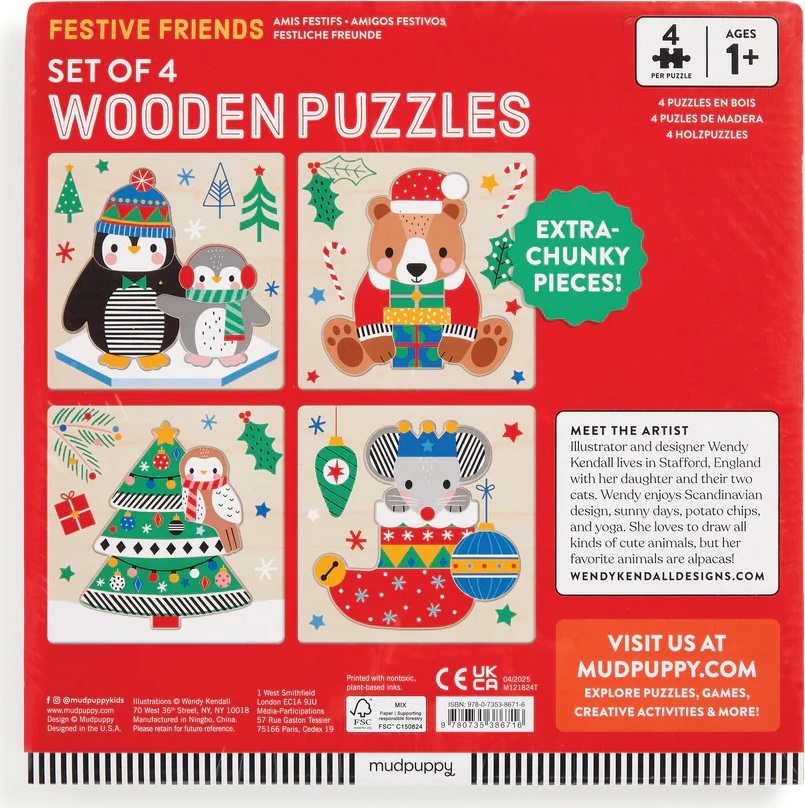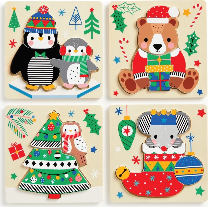 Mudpuppy Drevené vianočné puzzle sada 4 puzzle