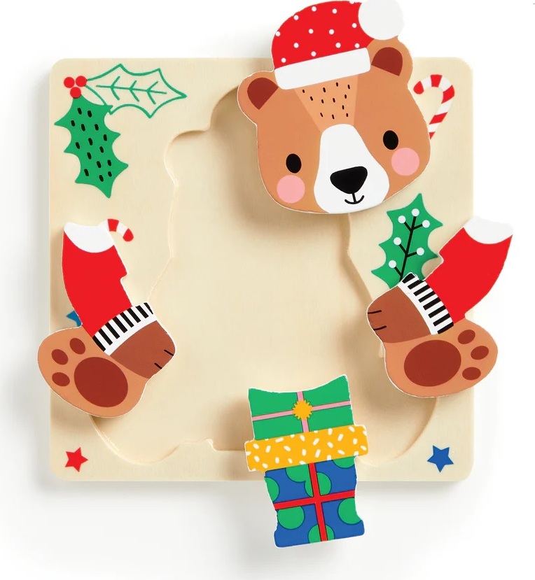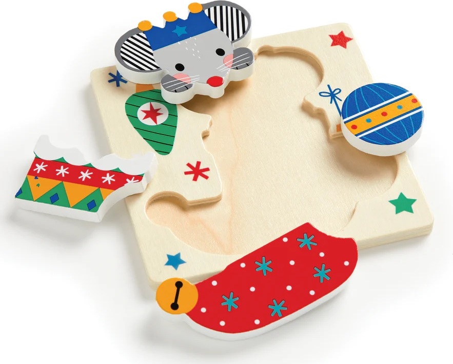 Sada 4 drevených puzzle s motívmi Vianoc. Drevená puzzle pre malé deti pomáhajú rozvíjať motorické schopnosti, kognitívne schopnosti, jazyk a pamäť. Ideálne prvé drevené puzzle pre najmenších. Robustné vkladacie puzzle s veľkými dielikmi vo vianočnom dizajne. Skvelý spôsob precvičenia jemnej motoriky, logického myslenia a poznávania tvarov a farieb. Toto drevené puzzle pre batoľatá je dodávané s hladkou drevenou základnou doskou s maľovanou scénou. Batoľatá môžu tiež precvičovať počítanie dielikov skladačky.