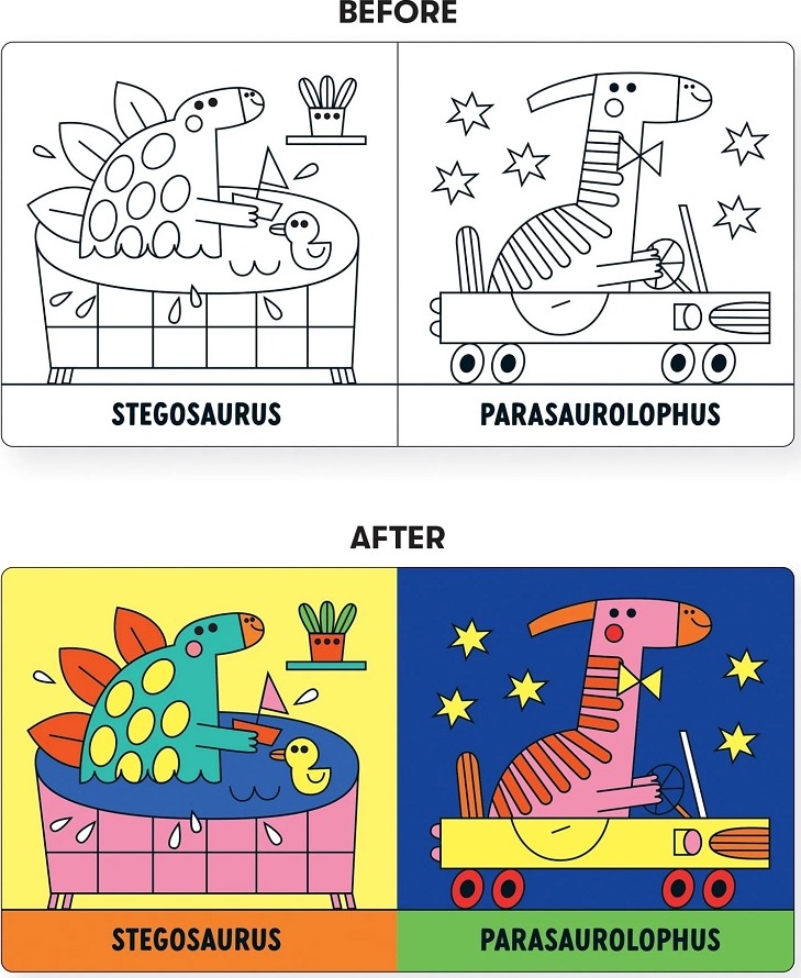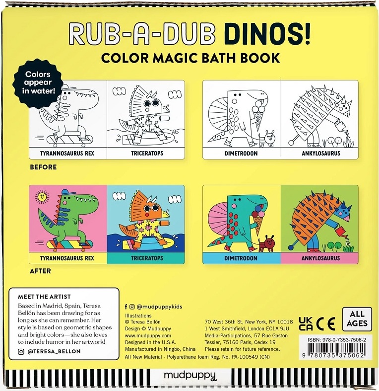 Objavte kúzlo jedinečných hračiek na kúpanie. Zdanlivo nenápadná obrázková knižka po namočení roztomilo ožíva pestrými farbami. Roztomilí dinosaury ľahko upútajú pozornosť dojčiat či batoliat a zabavia ich pri kúpaní.