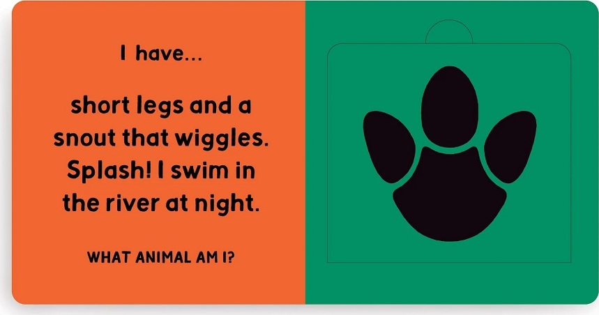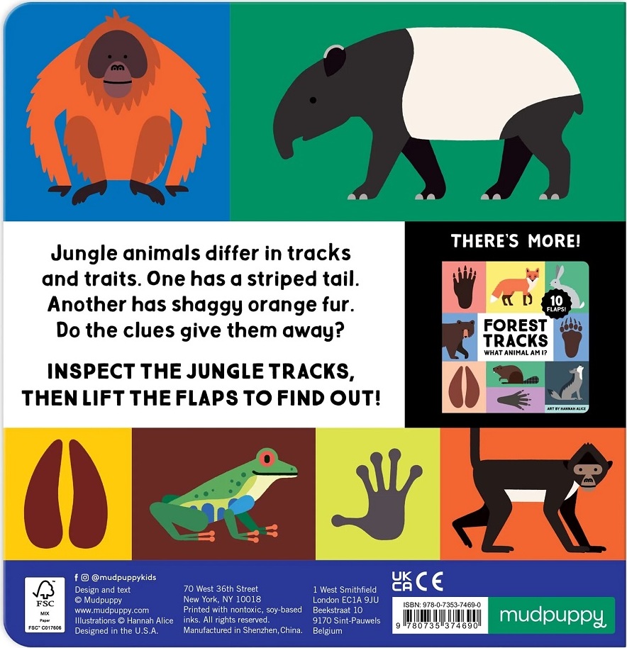Predstavujeme vám zábavnú a interaktívnu knihu o zvieratkách z džunge. Deti zistia aké zvieratko sa skrýva v hádanke, keď zdvihnú klapku so stopou zvieraťa. Kniha je v angličtine.