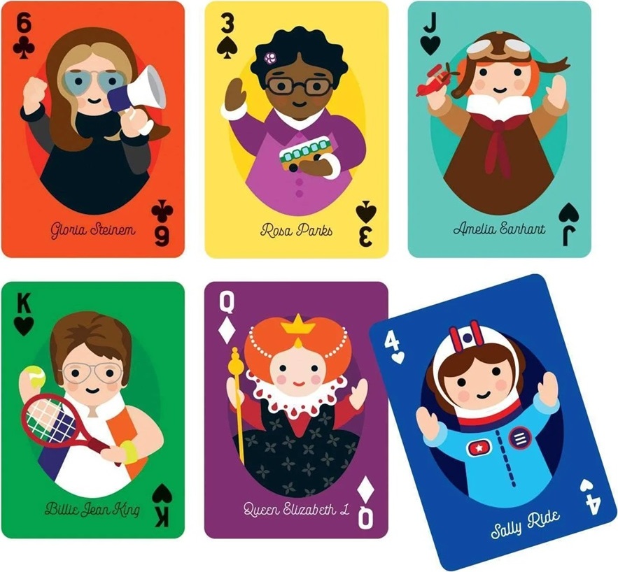Hracie karty Little Feminist obsahujú farebne ilustrované portréty skutočných žien, ktoré historicky ovplyvnili svet. Obrázky Lydie Ortiz sú vtipné a realistické zároveň. Karty sú uložené v praktickej kartónovej krabičke vyrobenej prevažne z recyklovaného papiera. Všetky produkty Mudpuppy spĺňajú bezpečnostné normy CPSIA, ASTM a CE.