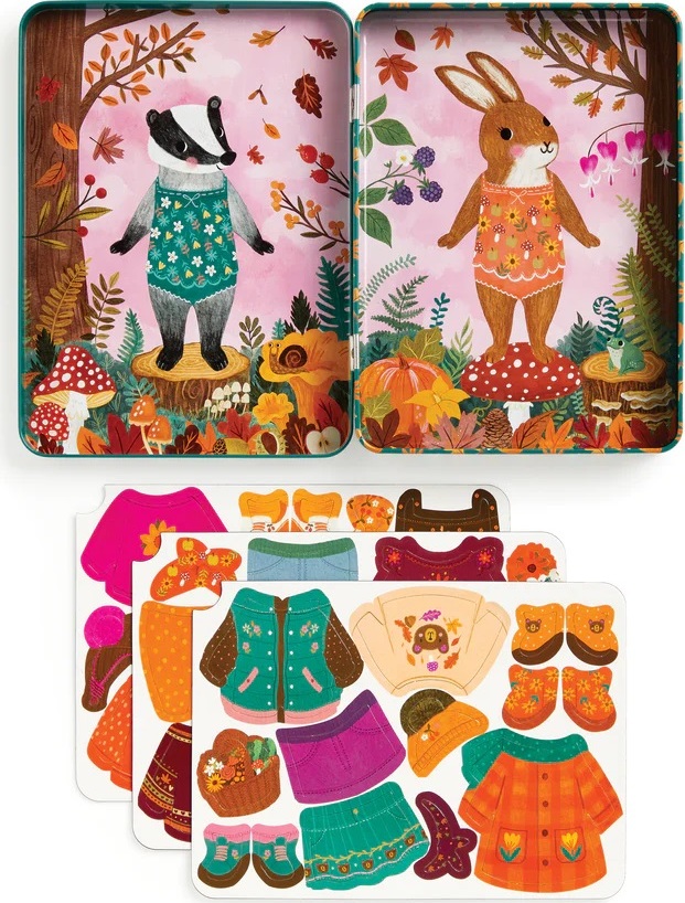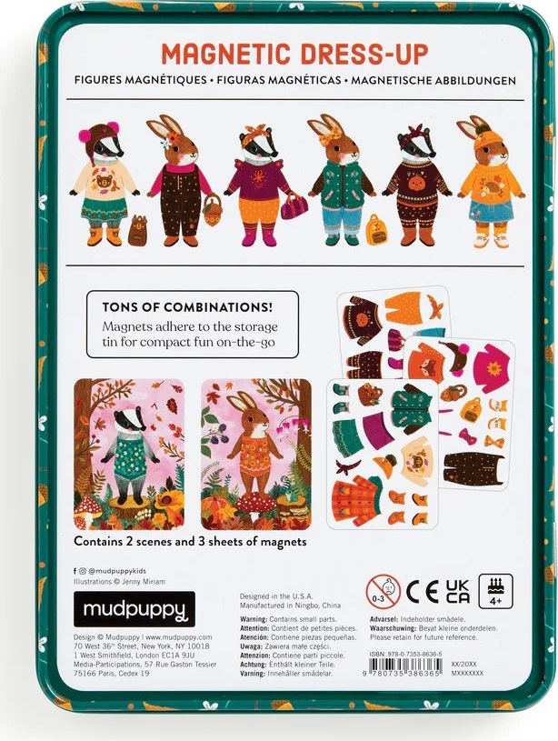 Ponorte sa do sveta módy s touto magnetickou sadou, ktorá bola navrhnutá na to, aby inšpirovala deti ku kreativite. Preskúmajte svoj zmysel pre štýl a predstavivosť a nakombinujte nespočetné množstvo módnych outfitov podľa svojej vlastnej fantázie. Hra obsahuje 2 ilustrované scény na pozadí, v jednej časti je zajac, v druhej jazvec, a obaja čakajú na svoje folklórne oblečenie. K dispozícii je na 3 kartách 40 magnetov s tematickým oblečením a doplnkami. Kombinujte všetko podľa svojich vlastných predstáv. Vhodné na doma aj na cesty.