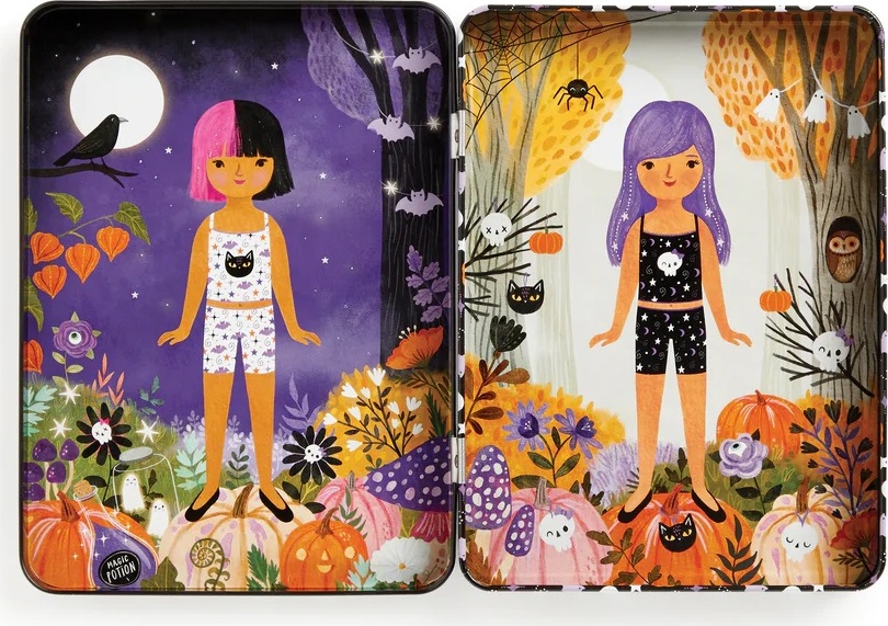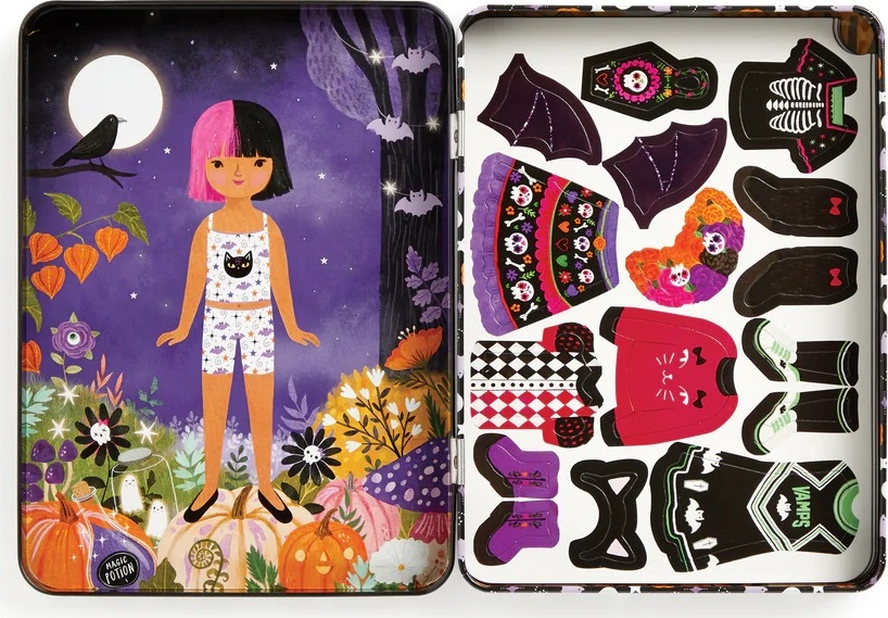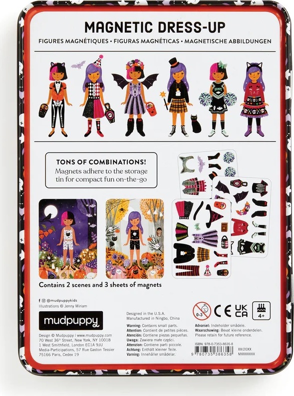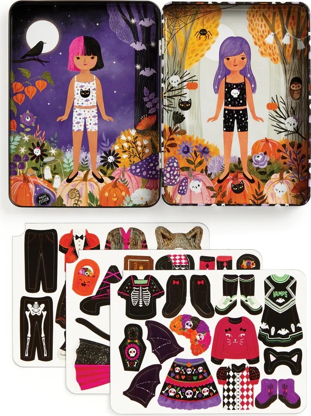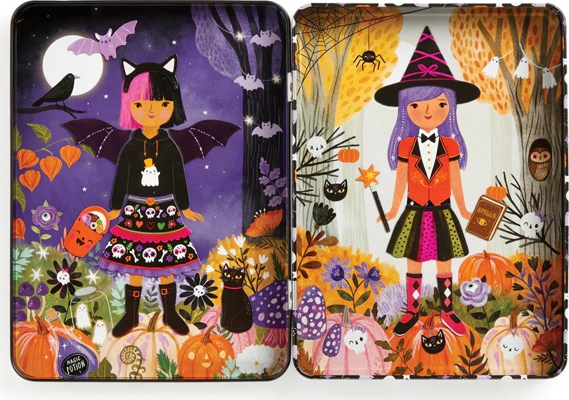 Ponorte sa do sveta módy s touto magnetickou sadou, ktorá bola navrhnutá na to, aby inšpirovala deti ku kreativite. Preskúmajte svoj zmysel pre štýl a predstavivosť a nakombinujte halloweenské kostýmy podľa svojej vlastnej fantázie. Hra obsahuje 2 ilustrované scény na pozadí, v každej časti je jedna slečna, ktorá čaká na svoje strašidelné oblečenie. K dispozícii je na 3 kartách viac ako 45 magnetov s tematickým oblečením a doplnkami. Kombinujte všetko podľa svojich vlastných predstáv. Vhodné na doma aj na cesty.