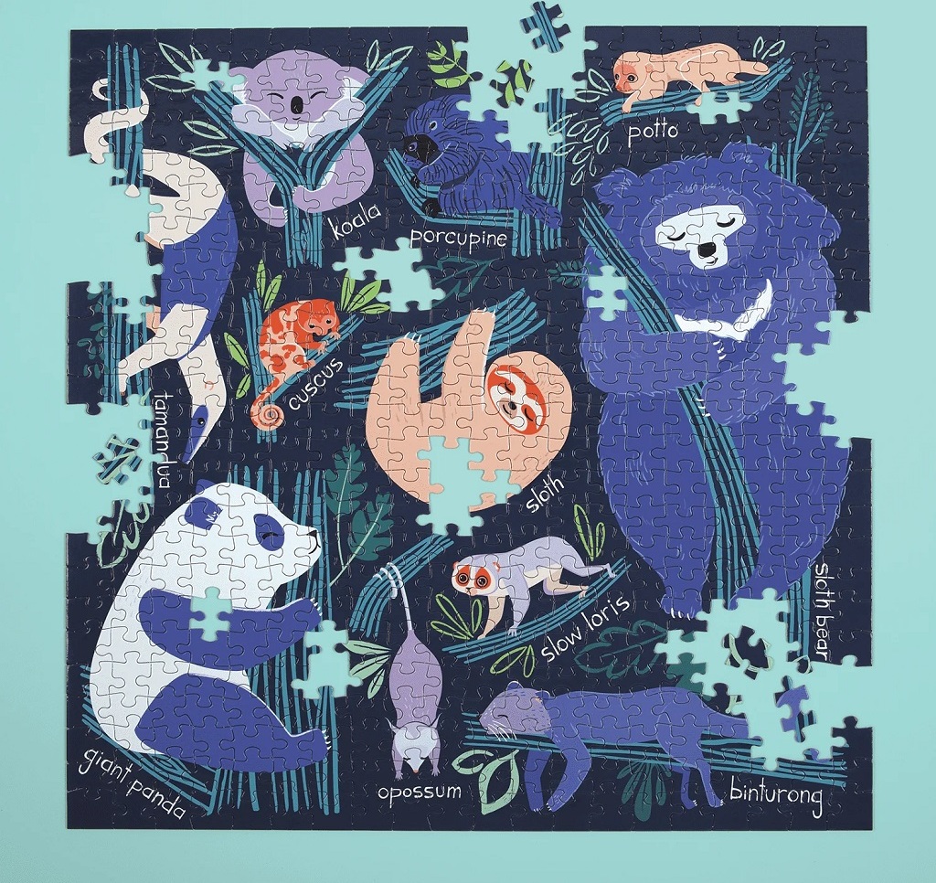 Puzzle zdriemnutie v stromoch obsahuje 11 krásne ilustrovaných pomaly sa pohybujúcich zvierat vrátane leňochoda, outlone a pandy veľké. Pre opätovné použitie aj skladovanie sú dieliky uložené v pevnej krabici. Ideálne aj ako darček.