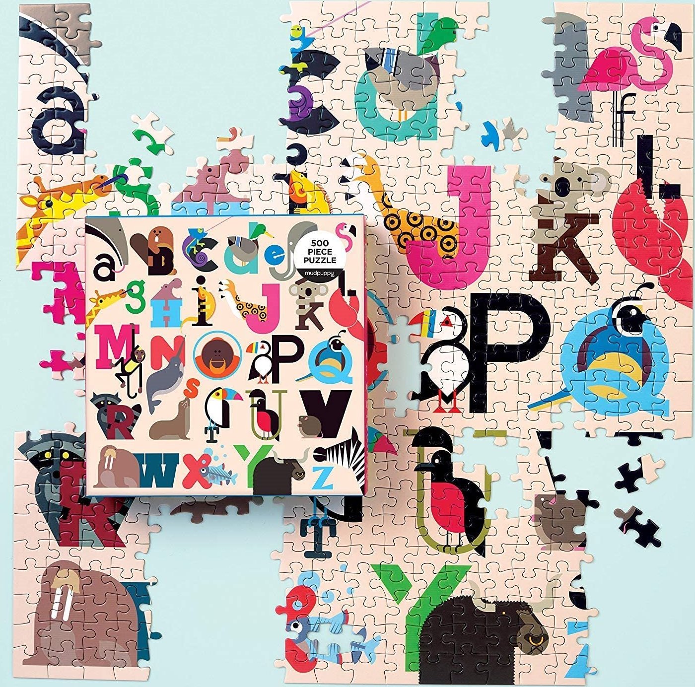MUDPUPPY Štvorcové puzzle Zvieratá od A do Z 500 dielikov