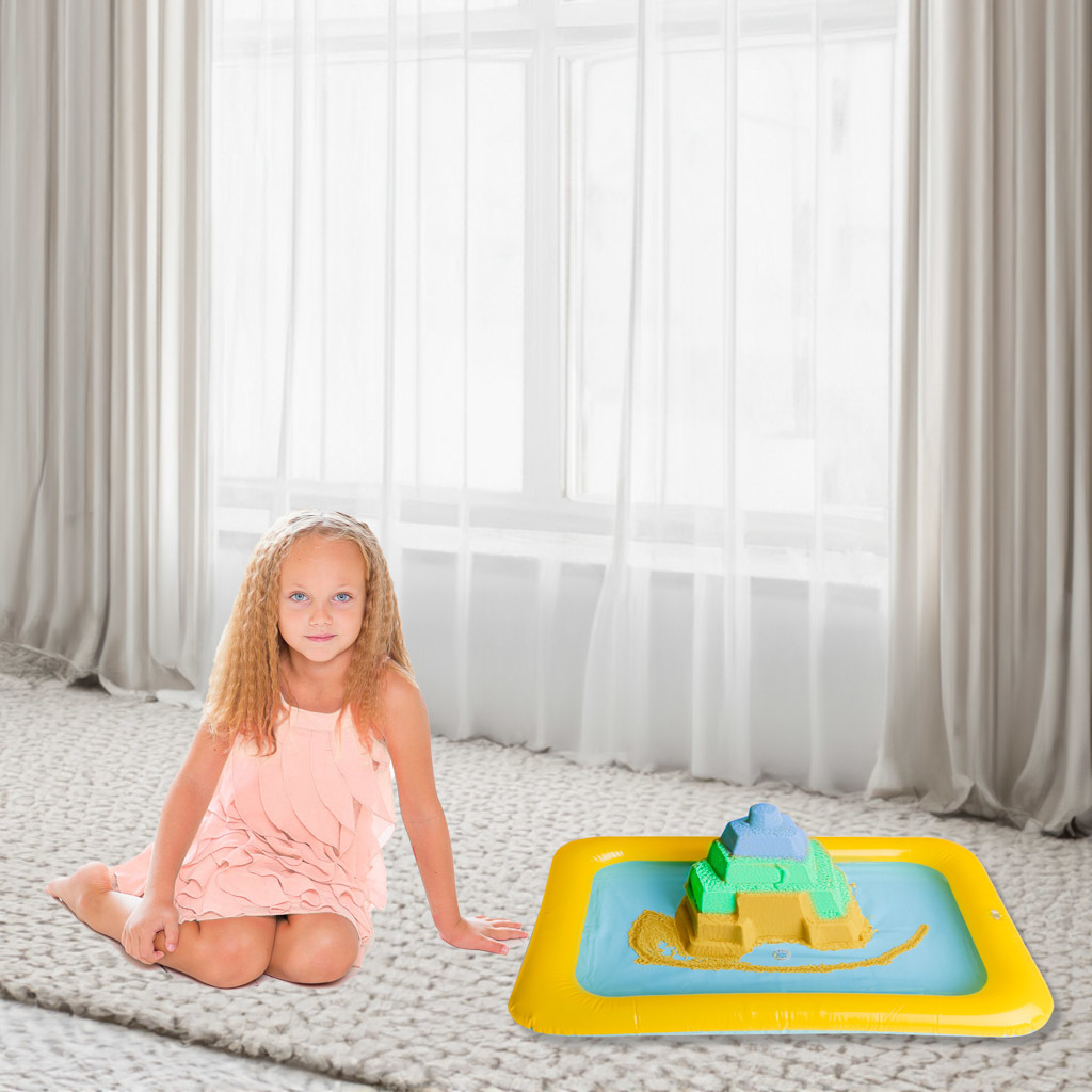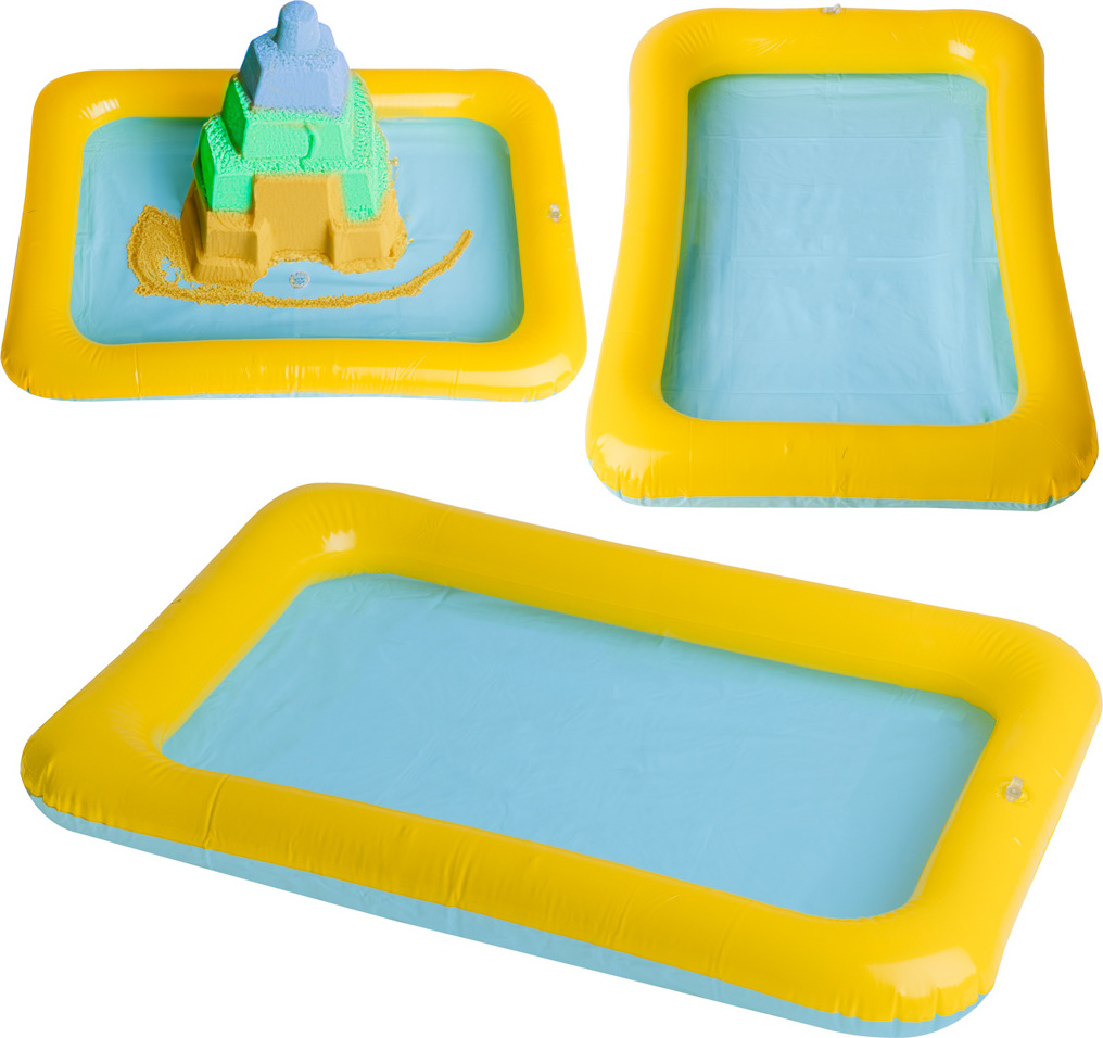Ideálne pre všetky druhy umeleckých hier. Vaše dieťa sa bude môcť voľne hrať s kinetickým pieskom a vy sa nemusíte báť, že si všetko zašpiní. Hodí sa aj na stavanie hradov z piesku na pláži. Pieskovisko je nafukovacie, takže po skončení hrania ho stačí vyfúknuť a nezaberie veľa miesta. Má klasický ventil ako väčšina nafukovacích hračiek do vody.