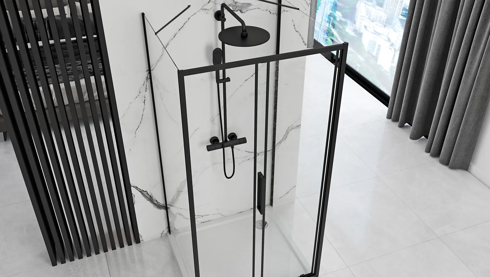 Vanička, sprcha ani odtokový žľab nie sú súčasťou sprchového kúta. Dokúpiť ich môžete u nás v eshope.