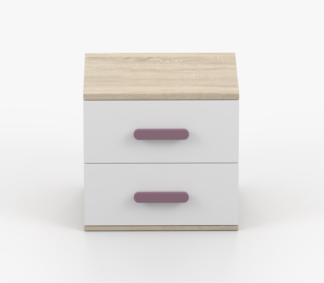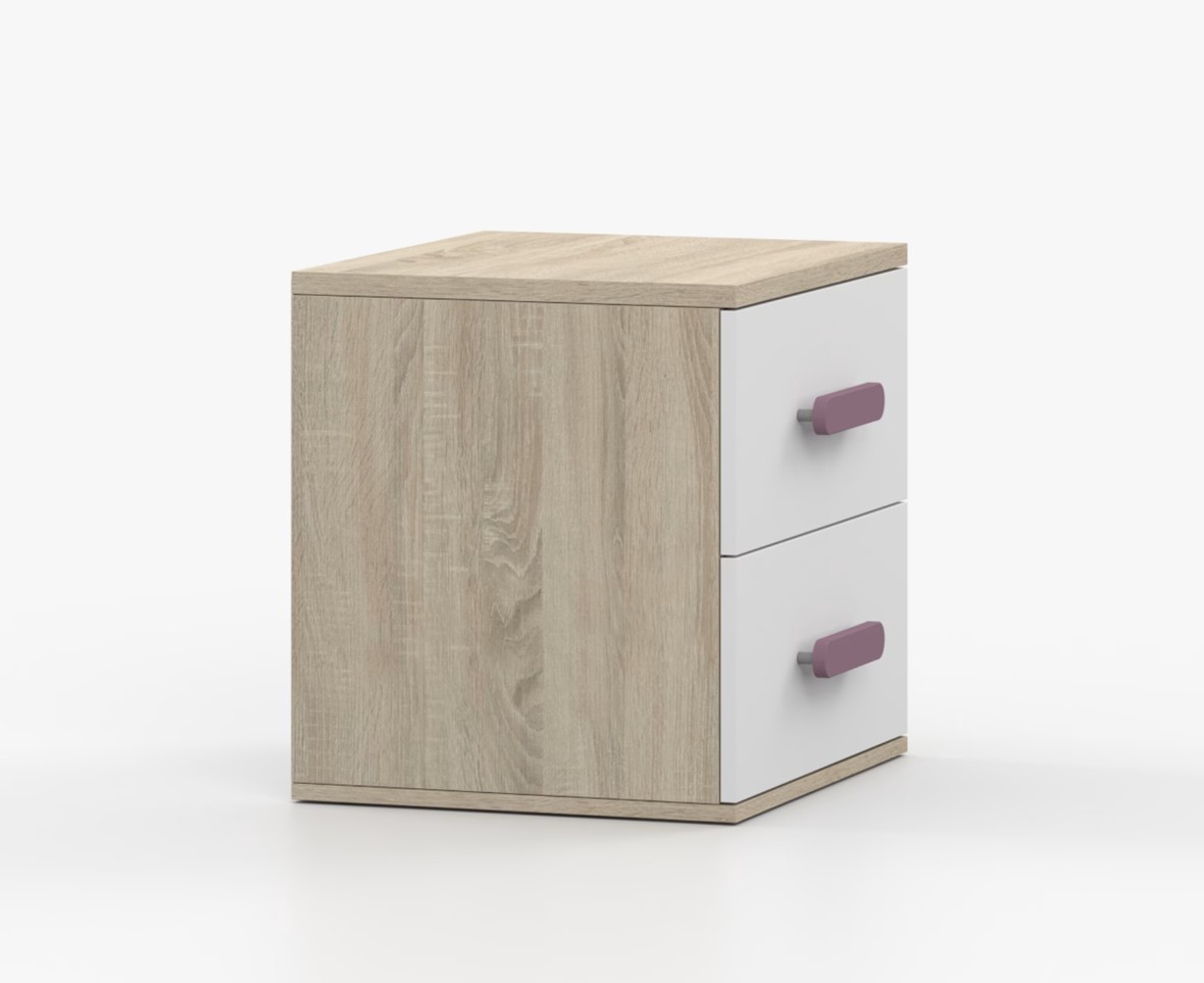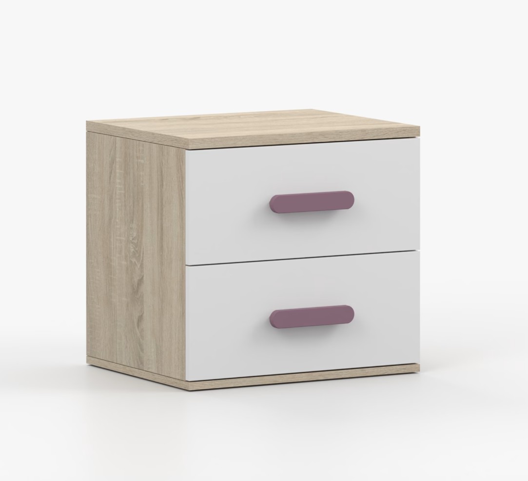 Nočný stolík SCOUT je moderný a praktický kus nábytku, vyrobený z kvalitnej 16mm laminovanej dosky v dekore duba sonoma. Stolík má hrany ohranené odolnou ABS hranou, ktorá ich chráni pred mechanickým poškodením. Je vybavený dvoma priestrannými zásuvkami s drevenými farebnými úchytkami. Jeho nadčasový dizajn sa hodí do rôznych typov interiérov, napríklad do detskej izby alebo izby pre študenta.