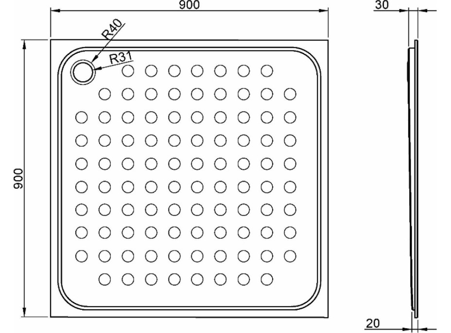 NOFER Sprchová vanička 900x30x900 mm, nerez mat 13052.90.S