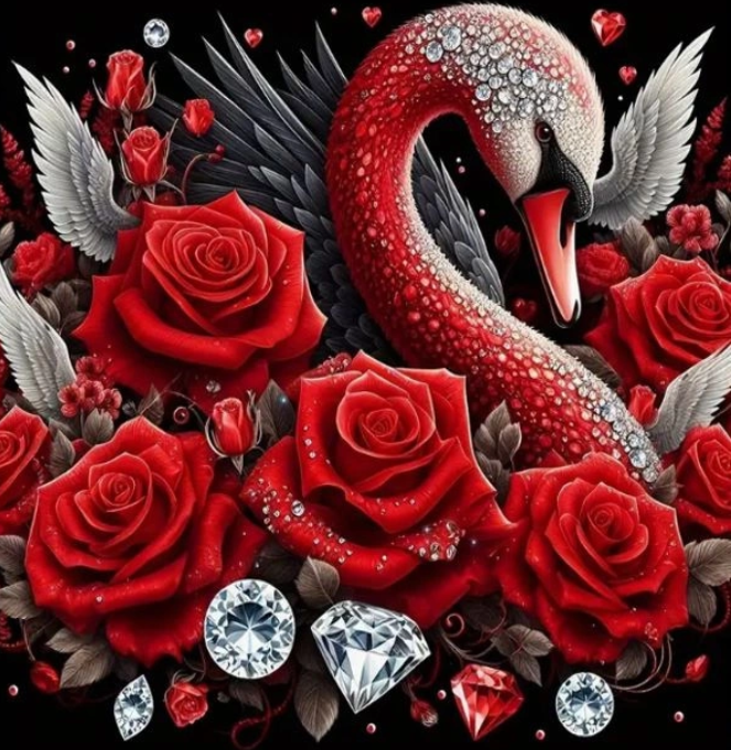 NORIMPEX Diamantové maľovanie Labuť s ružami a diamantmi 30x40cm