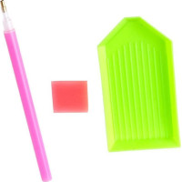 Balenie obsahuje: plátno s predtlačeným obrázkom, pero na aplikáciu kamienkov, misku na vysypanie kamienkov, vosk na nalepenie, sadu farebných kamienkov