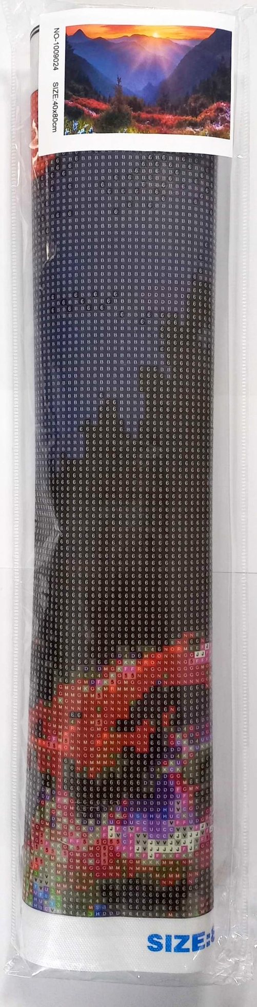 Diamantové maľovanie - postup: Horná strana plátna je potiahnutá lepidlom a prekrytá priehľadnou fóliou. Fóliu dávajte dole postupne po častiach tak, ako budete aplikovať kamienky. Pri sňatí celej fólie naraz sa môže lepiaca vrstva znečistiť a kamienky by nemuseli tak dobre držať. Plátno obsahuje znaky, ktoré sú uvedené v priloženej legende a odkazujú na príslušné vrecko s kamienkami označené číslom. Kamienky z daného vrecka vysypte do misky. Do hrotu pera naberte vosk, vďaka ktorému sa kamienky ľahko prichytia na pero. Kamienky perom nanášajte na obrázok. Po nalepení danej farby kamienky nasypte späť do vrecka a pokračujte s ďalšou farbou.