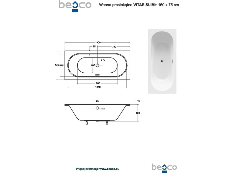 Dizajnovo jednoduchá vaňa VITAE SLIM+ s veľmi nízkou hranou (iba 15 mm) as dokonalou rovnosťou okrajov je určená pre menšie aj väčšie kúpeľne. Vaňa VITAE SLIM+ s veľkými vnútornými rozmermi, ktorá ponúka obojstranné veľmi pohodlné ležanie a prepad s pozdĺžnou štrbinou . Sifón vo farbe CHROM je súčasťou vane. Obdĺžniková vaňa VITAE SLIM+ vyniká vysoko kvalitným spracovaním a spoľahlivou funkčnosťou všetkých súčastí a materiálov.