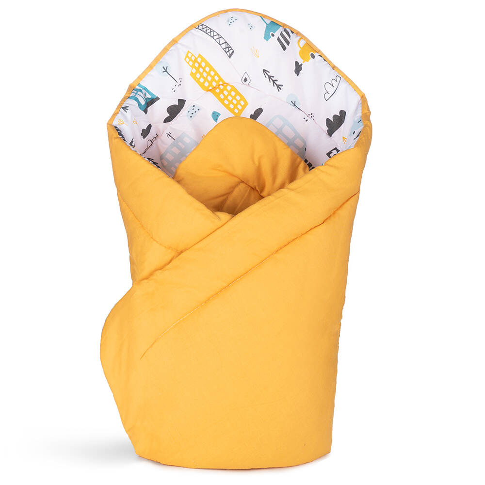 Obojstranná zavinovačka pre bábätká 80x80 cm BABY - Mesto / žltá