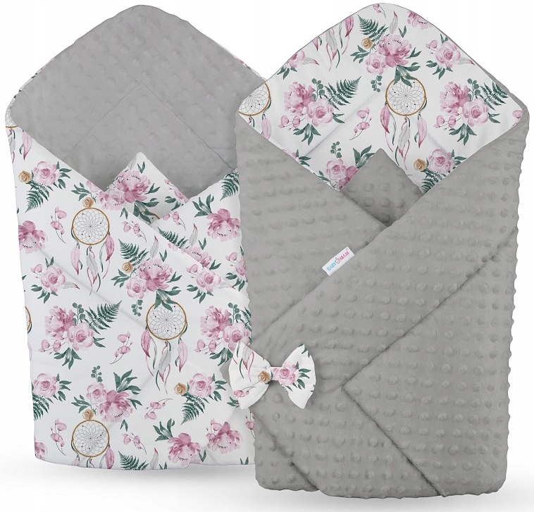 Obojstranná zavinovačka pre bábätká 80x80 cm BABYMAM PREMIUM - Dreamcatcher so sivou Minky