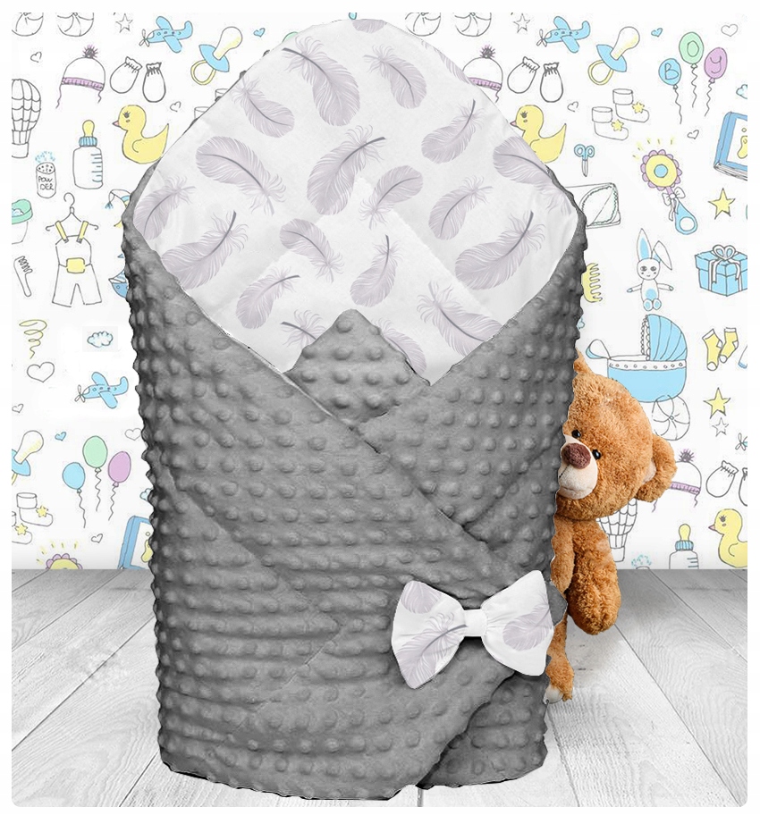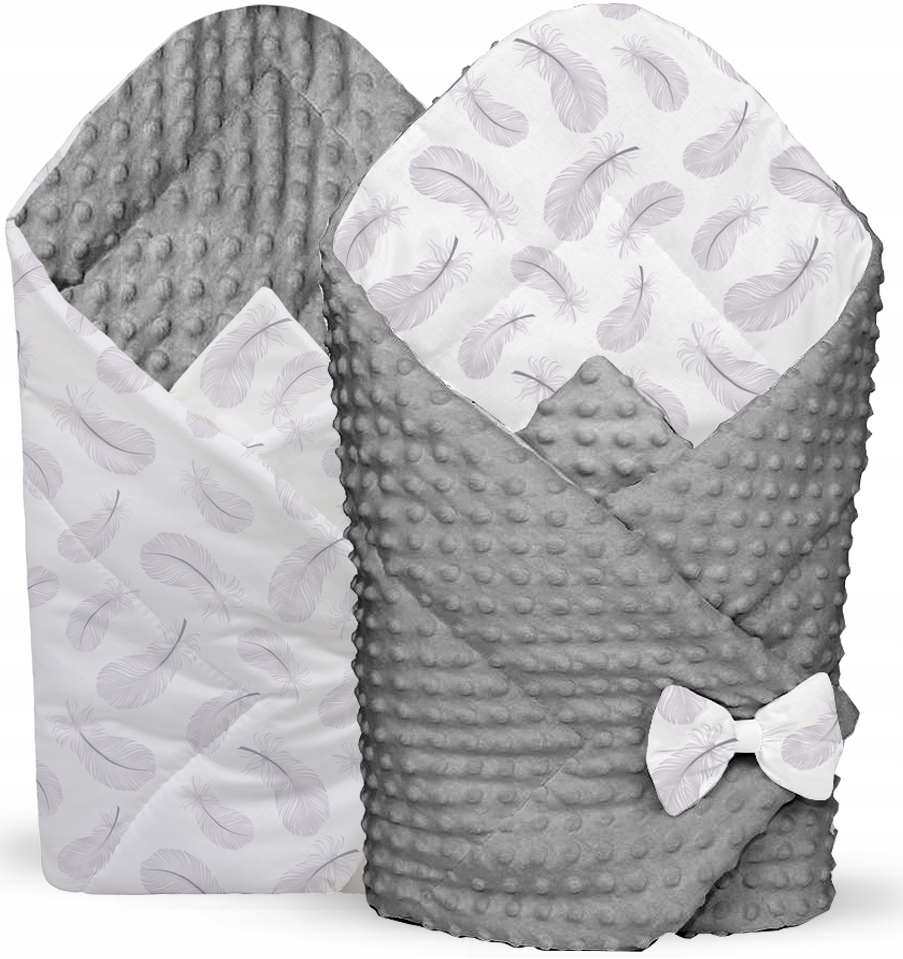 Obojstranná zavinovačka pre bábätká 80x80 cm PREMIUM - Pierka so sivou Minky