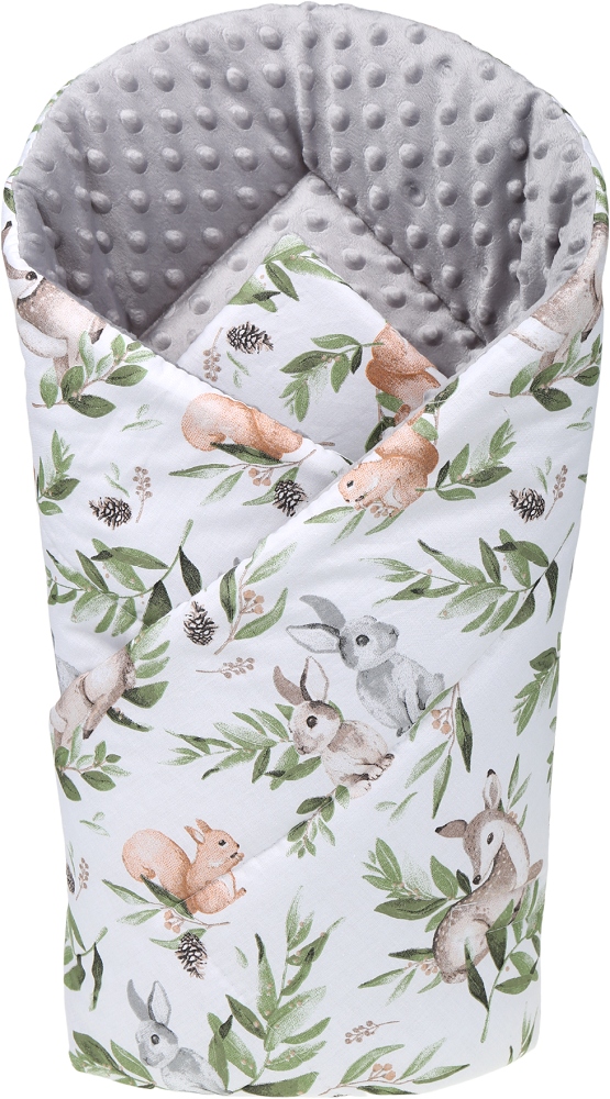 Obojstranná zavinovačka pre bábätká 80x80 cm BABYMAM PREMIUM - Zelená paseka so šedou minky