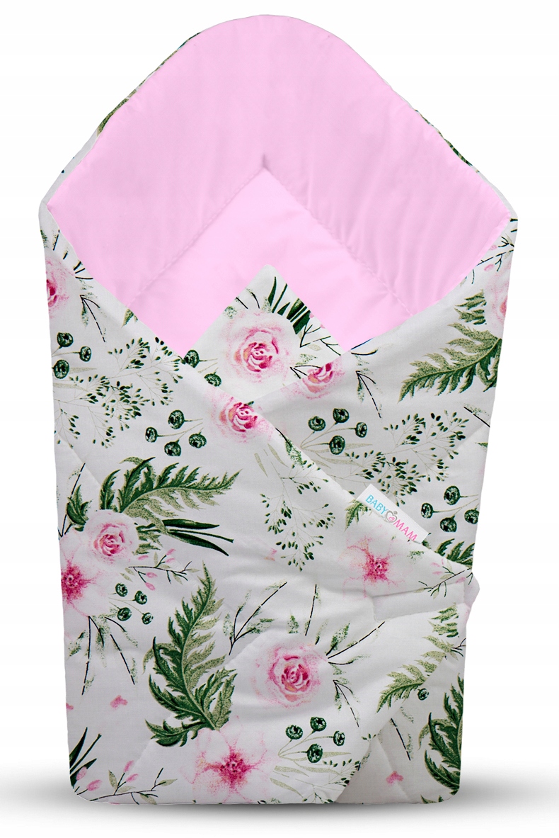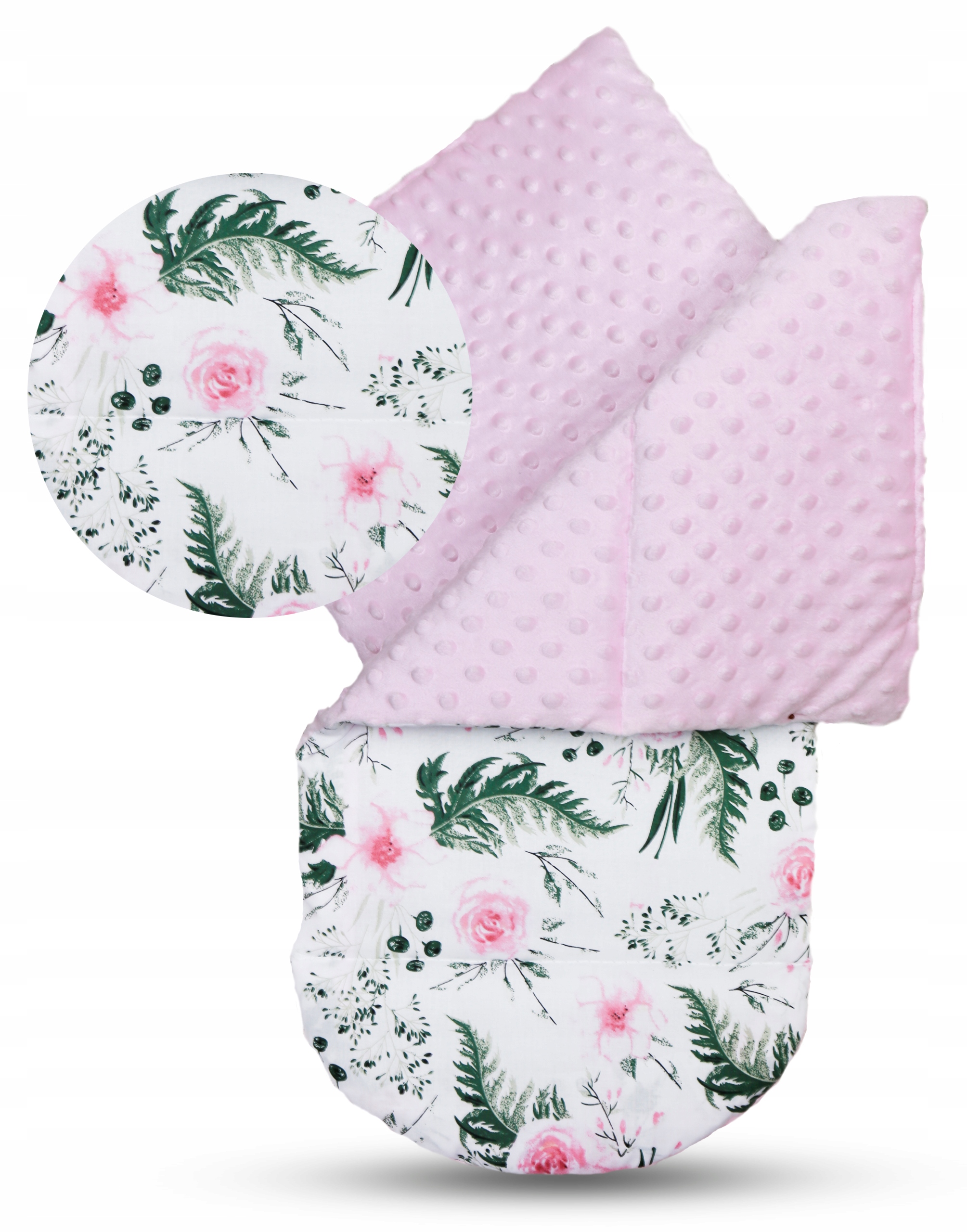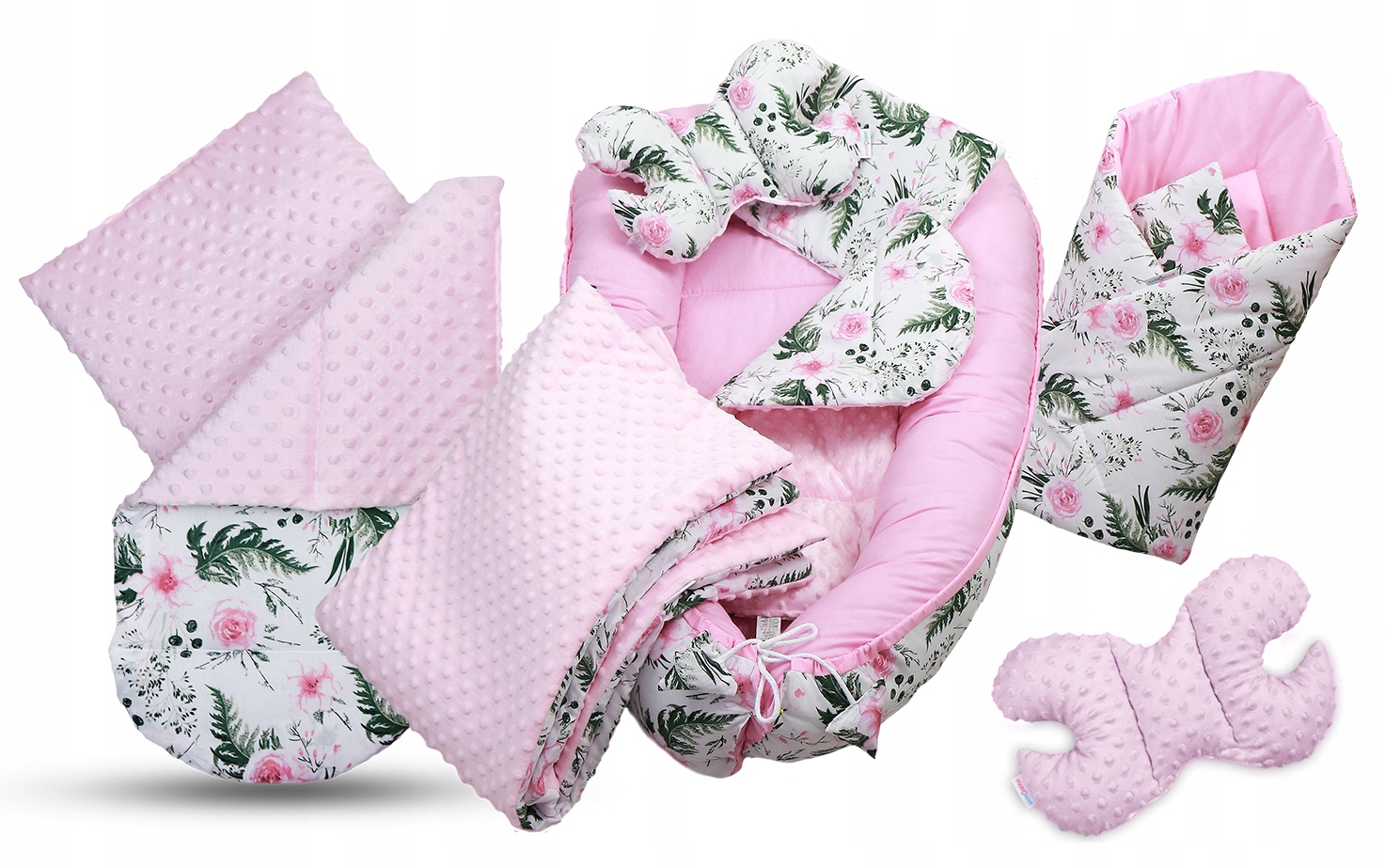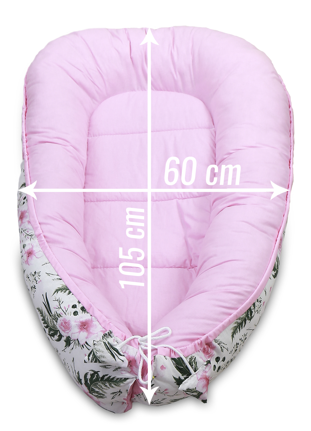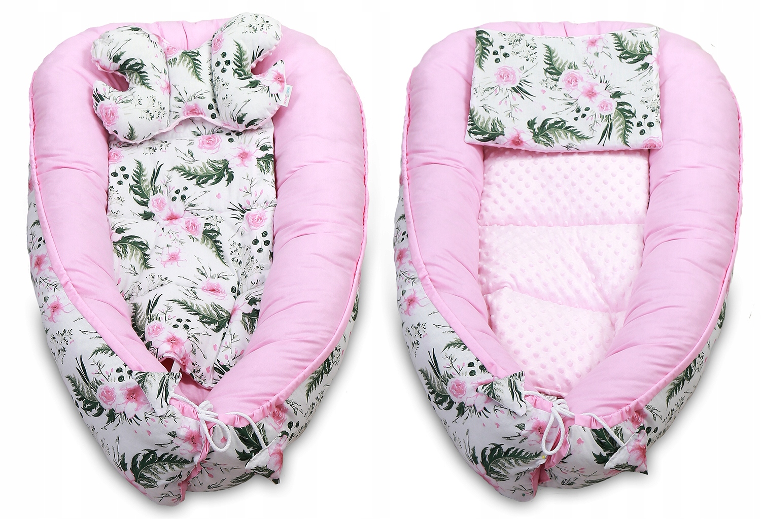 Obojstranné hniezdočko (kokon) pre bábätko - BABYMAM PREMIUM set 7v1 - Kvety v záhrade s ružovou Minky