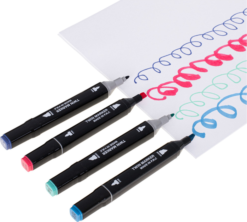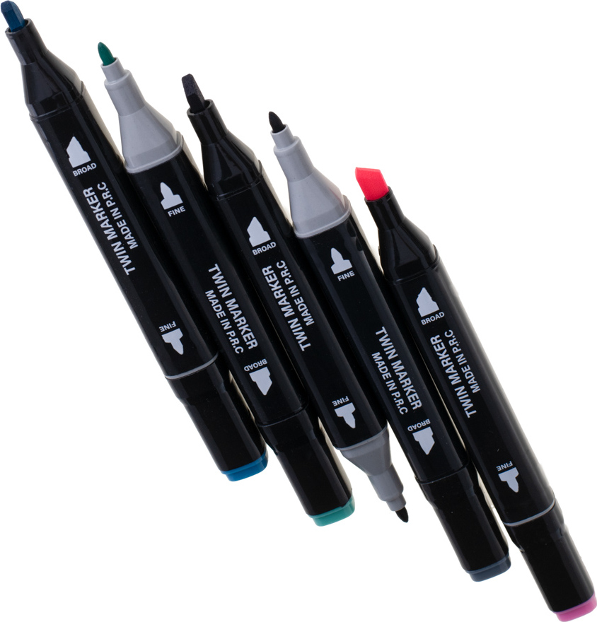 Každý popisovač má dva hroty, široký hrot, ideálny na maľovanie väčších plôch, a tenký hrot na tenké a presnejšie čiary na doplnenie detailov. Správny výber hrotu zaistí, že výkres bude podrobný alebo lepšie zakrytý. Atrament na alkoholovej báze poskytuje vynikajúce tieňovanie - farby sa navyše ľahko miešajú a umožňujú rýchle miešanie farieb. Atrament na alkoholovej báze tiež rýchlo preniká do papiera, takže sa pri maľovaní určite nerozmazáva a po zaschnutí sa stáva trvalým.