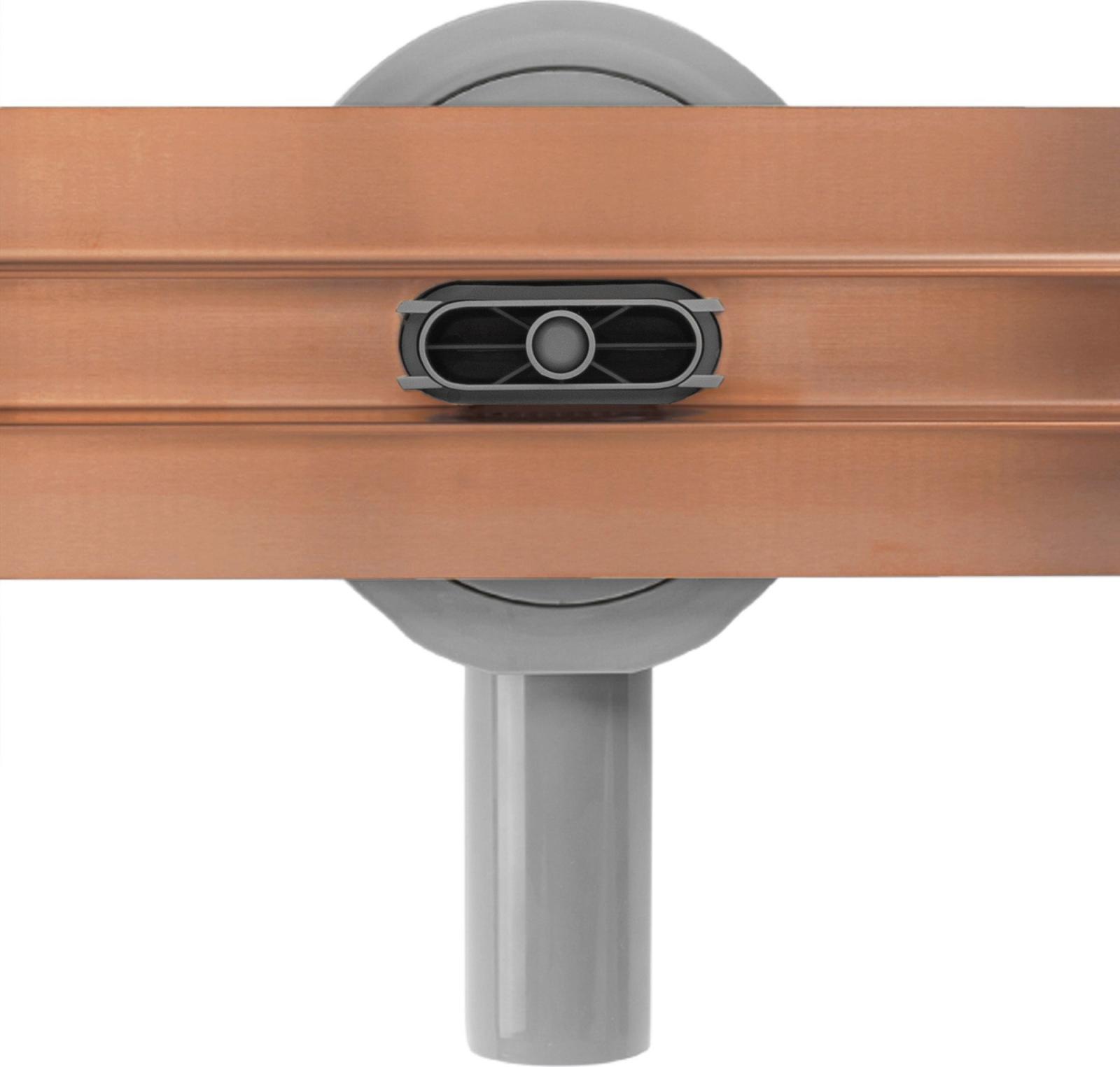 Odtokový sprchový žľab Neox Slim PRO je vyrobený z nerezovej ocele AISI304 s hrúbkou 1,2 mm s krycím roštom o sile 1,5 mm s medenou brúsenou povrchovou úpravou v minimalistickom štýle.
