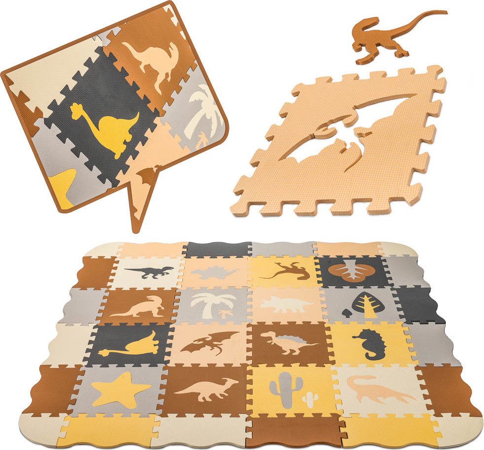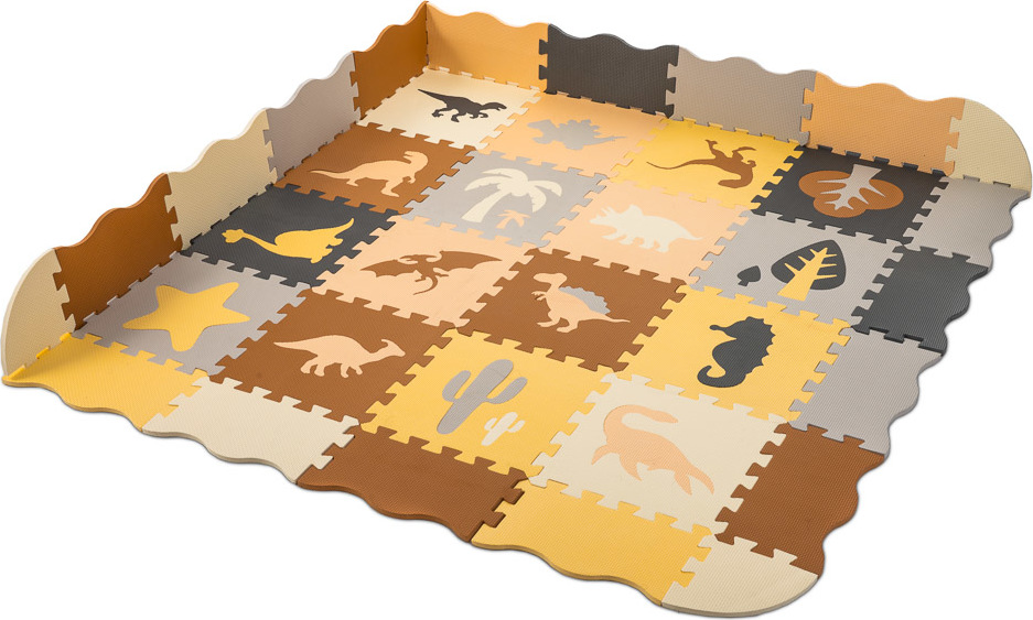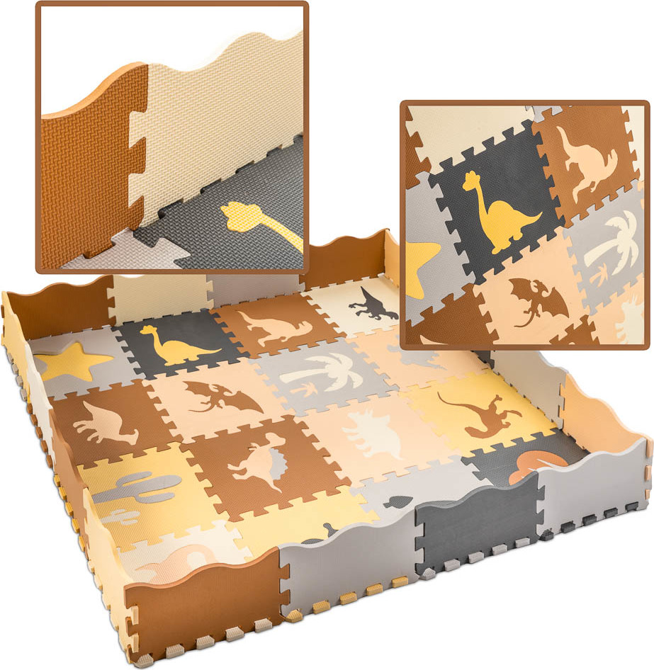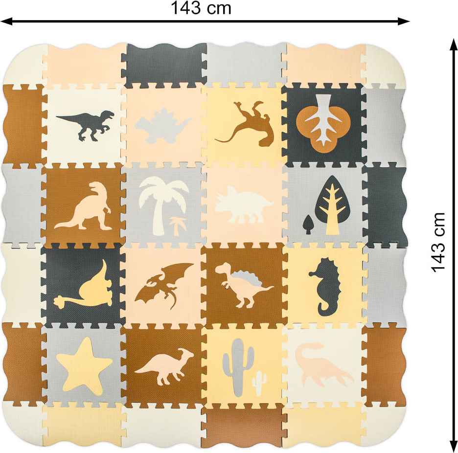 Penová puzzle podložka/ohrádka 36 prvkov - Dinosaury - 143 cm x 143 cm x1 cm